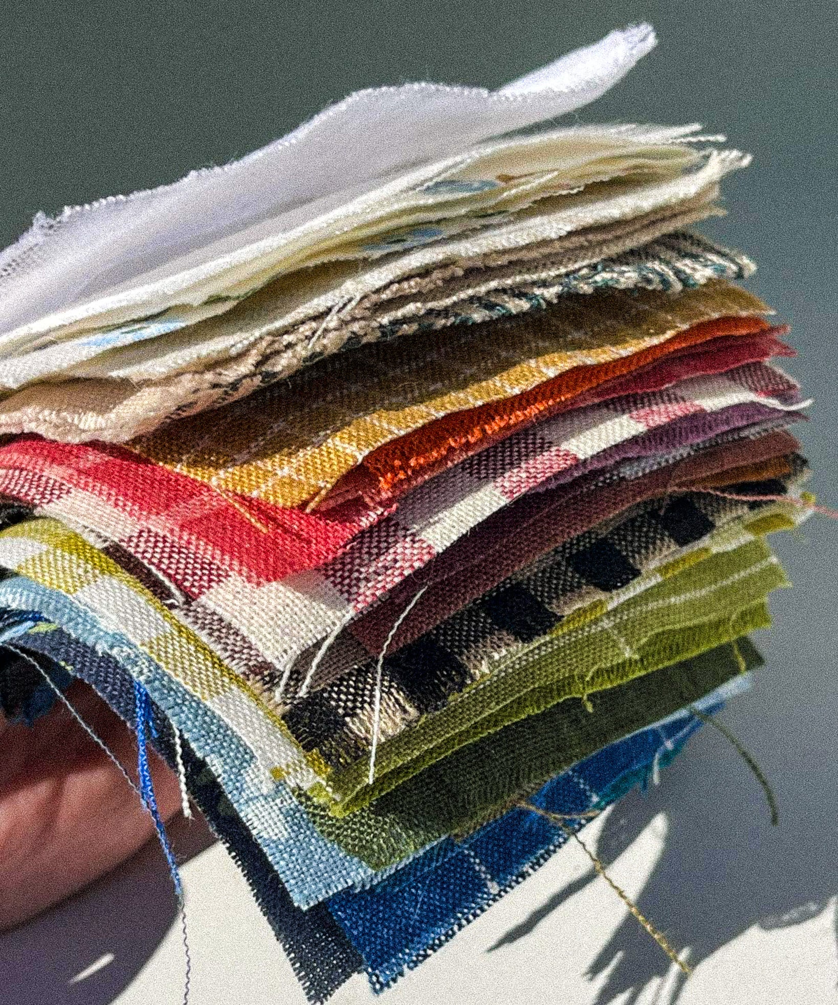 Rich cobalt blue, sunlit butter, grounded loden green, nostalgic laurel, and espresso gingham - the tones chosen for their individual beauty and how harmoniously they live together. A cohesive spectrum, designed to mix, match, and layer effortlessly throughout the sunny season.