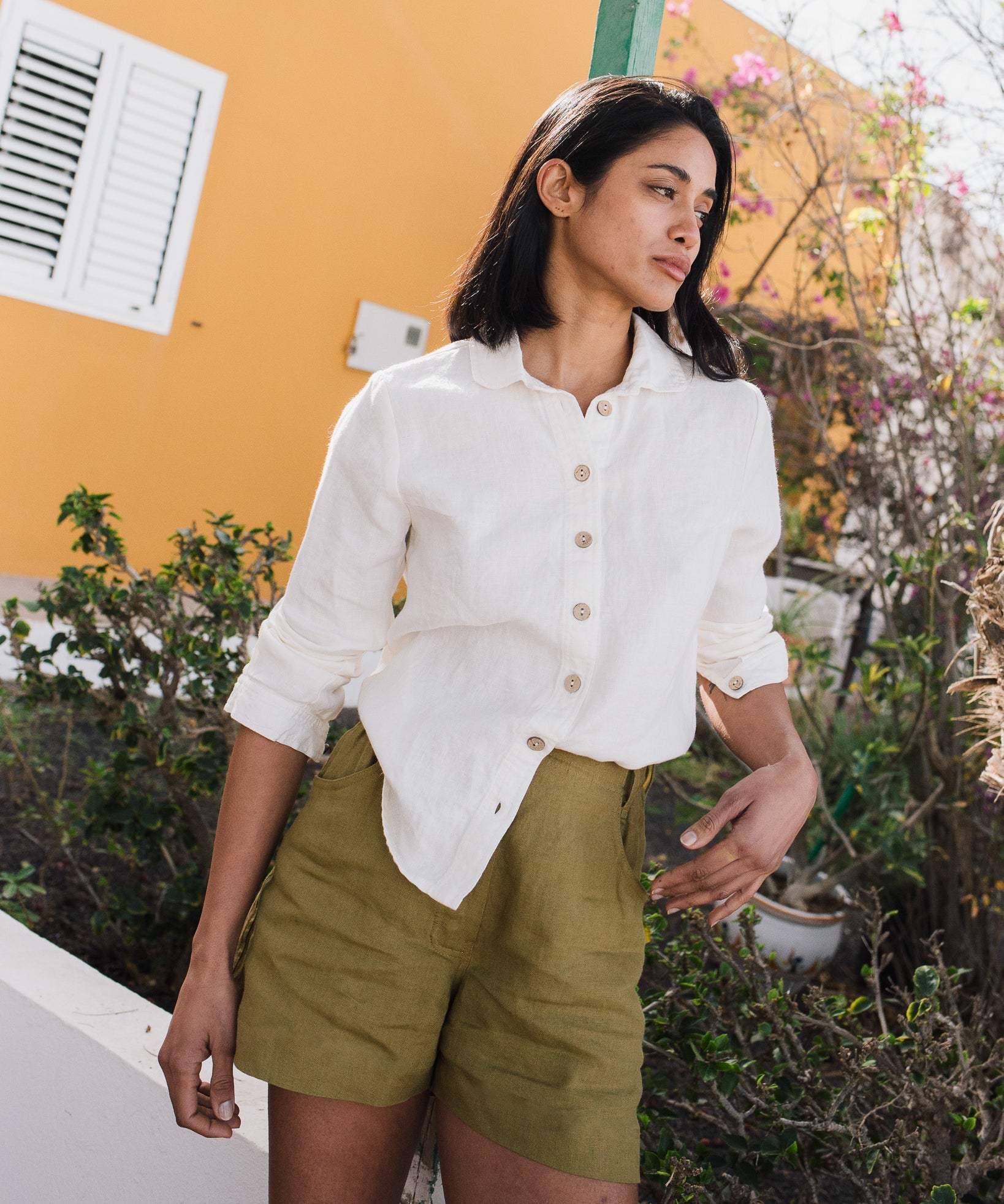 Shop our collection of linen shirts for women, featuring various colors and models. From casual to dressy, linen shirts are versatile for any occasion.