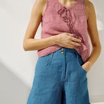 • Ethically crafted in Lithuania from prewashed premium Light-weight (±160 g/m² | ±4.1 oz/yd²) linen fabric. This exceptional fabric allows air to circulate even more freely compared to Medium-Weight linen fabric. As a result, the garment has a superior flow, moisture absorption, ventilation, evaporation of sweat, and drying qualities, and they effectively prevent clothing from becoming stuck to the skin.