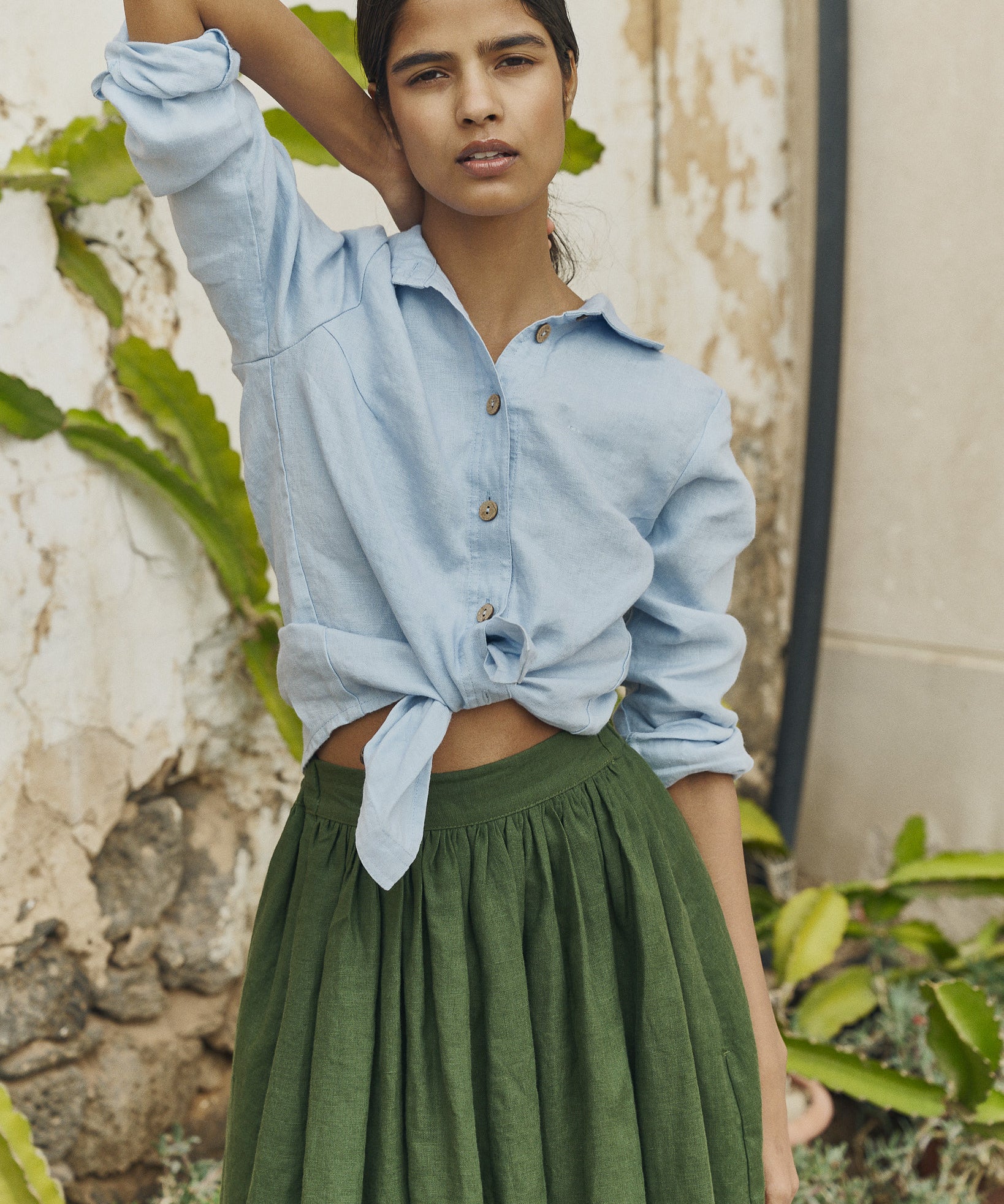 MARSEILLE linen front snap skirt