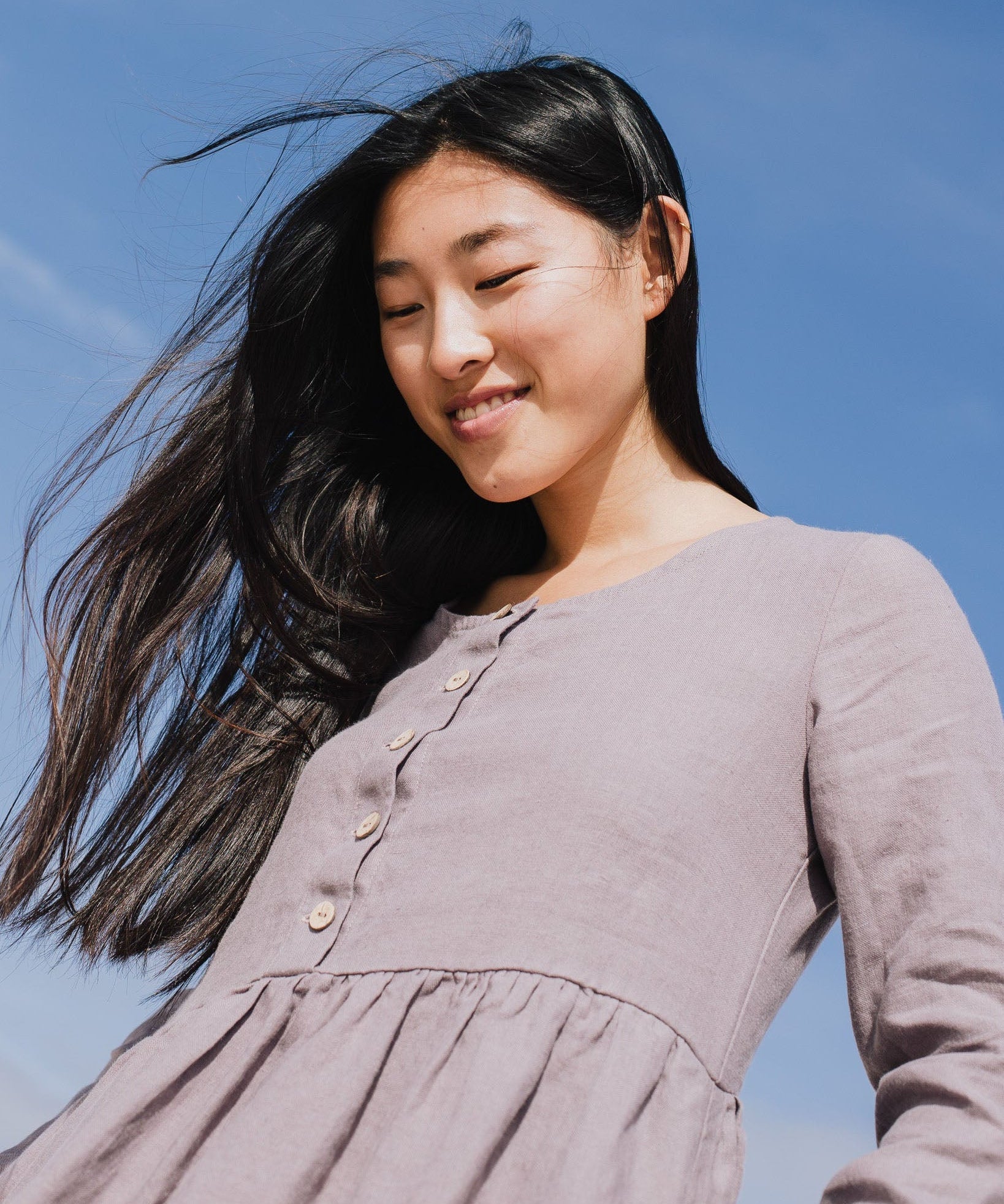 R: Long sleeve midi MAMA linen dress (Color: Marsala; Size: M/L - MIDI length)
