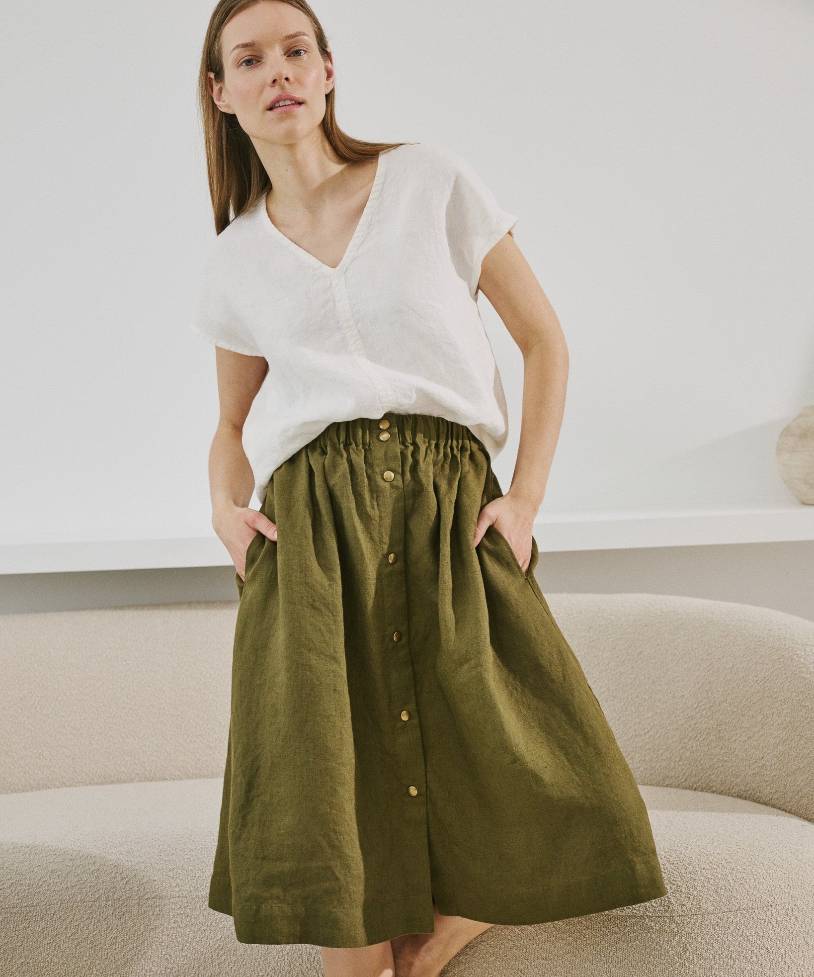 R: MARSEILLE linen front snap skirt (Color: Antique Petals; Size: S/M)