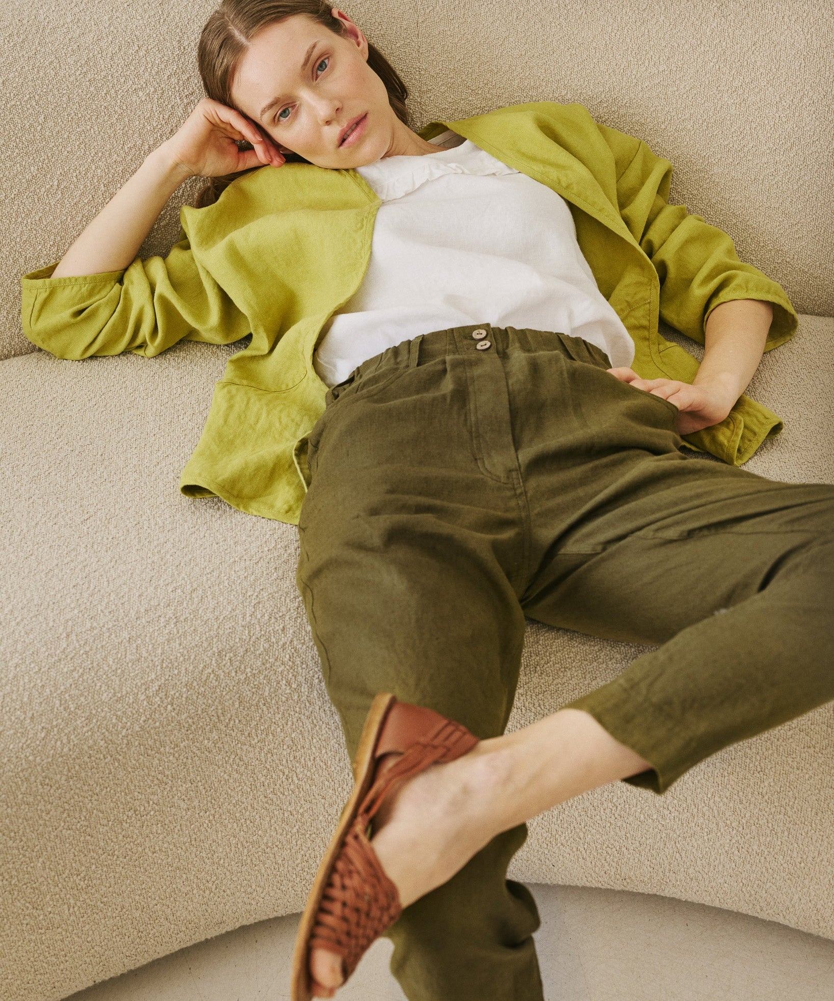 R: DOOLIN high-waisted linen pants (Color: Espresso; Size: S/M)