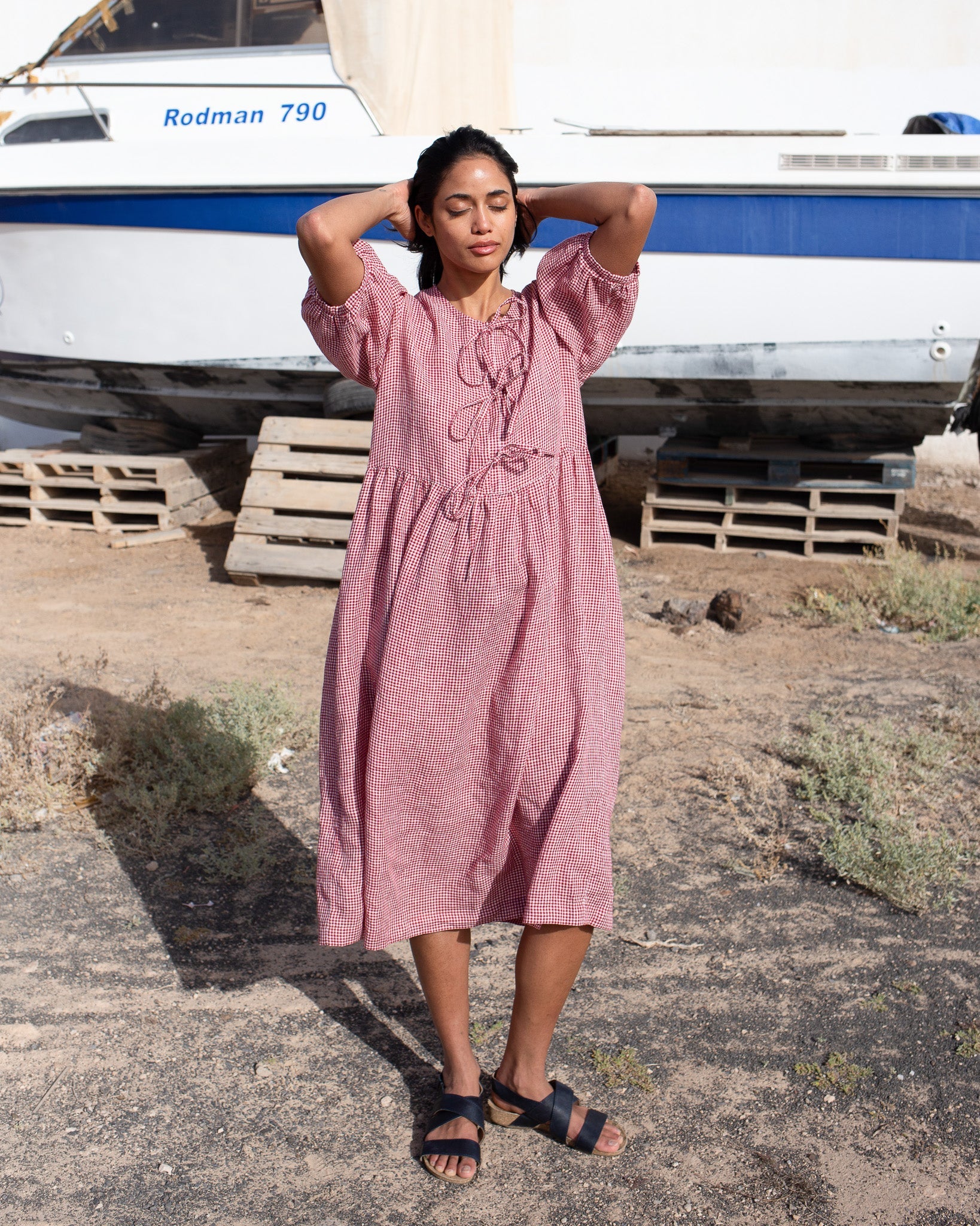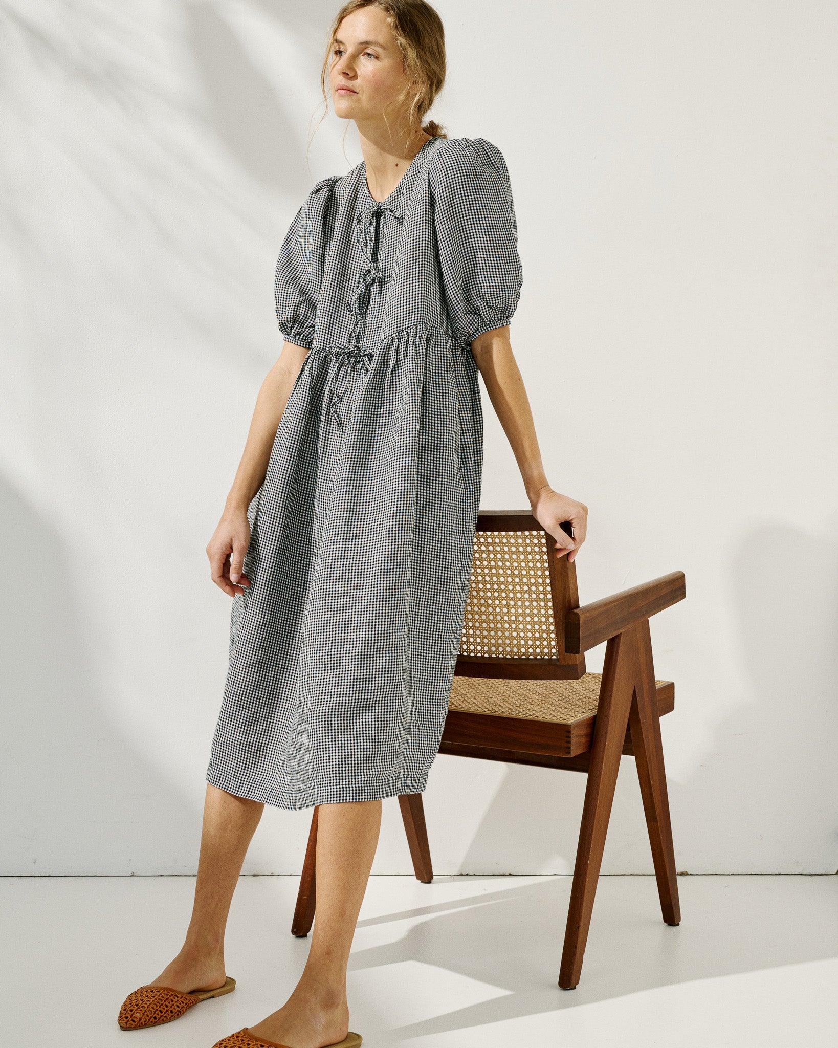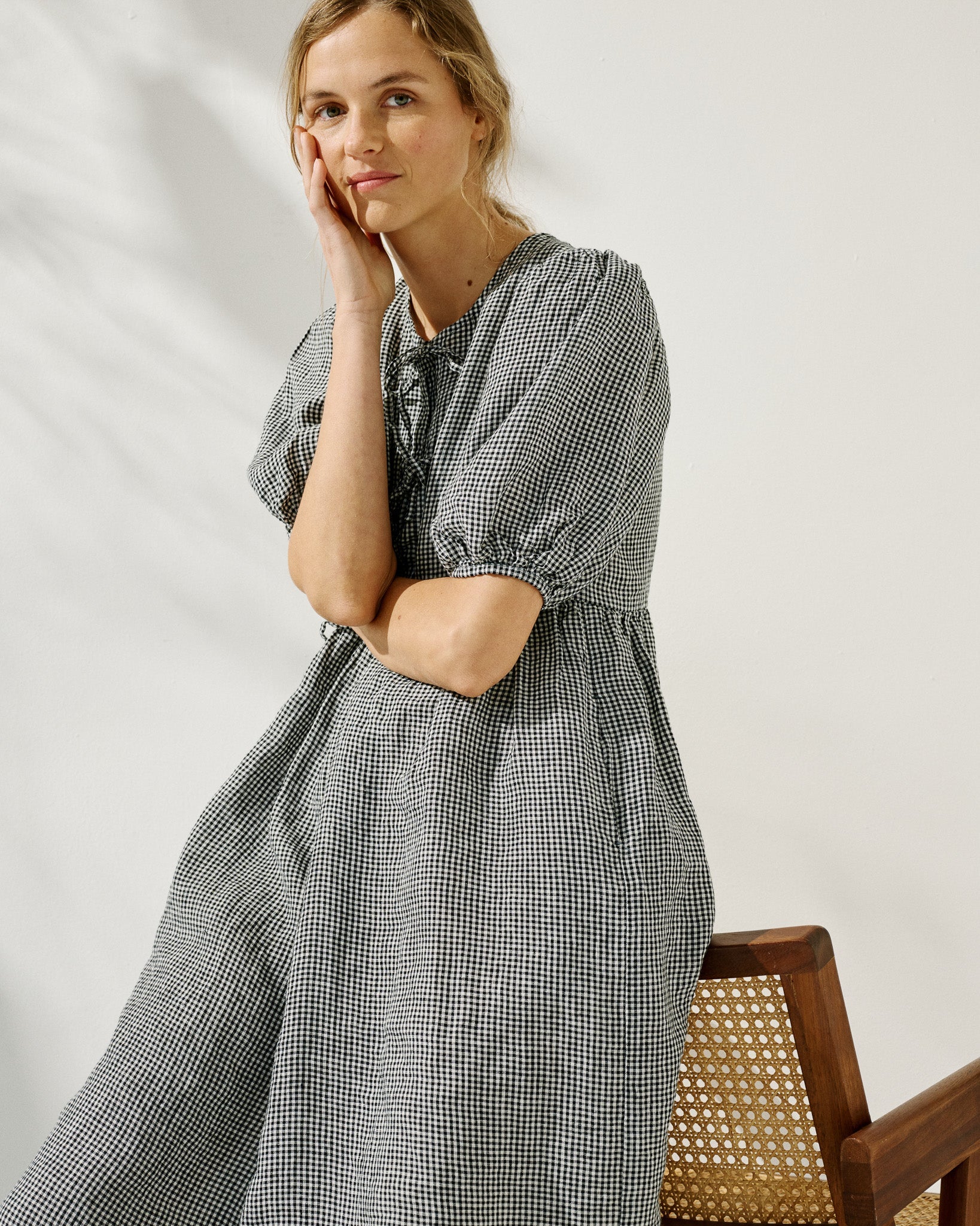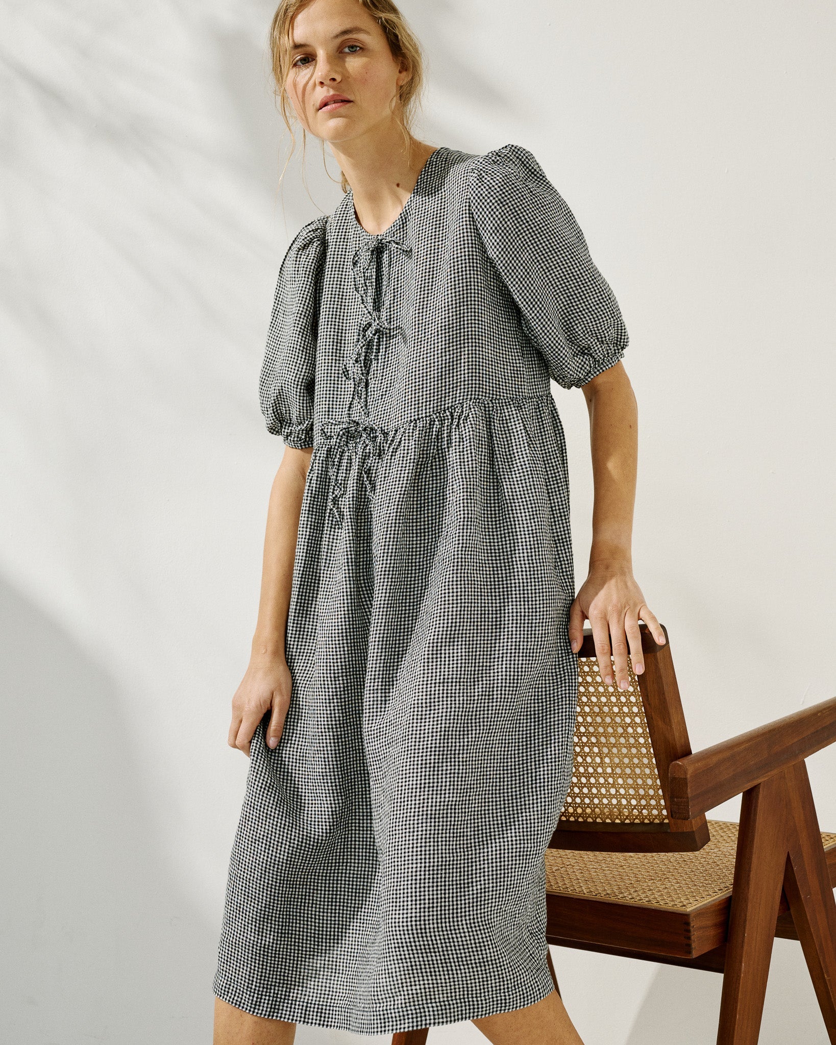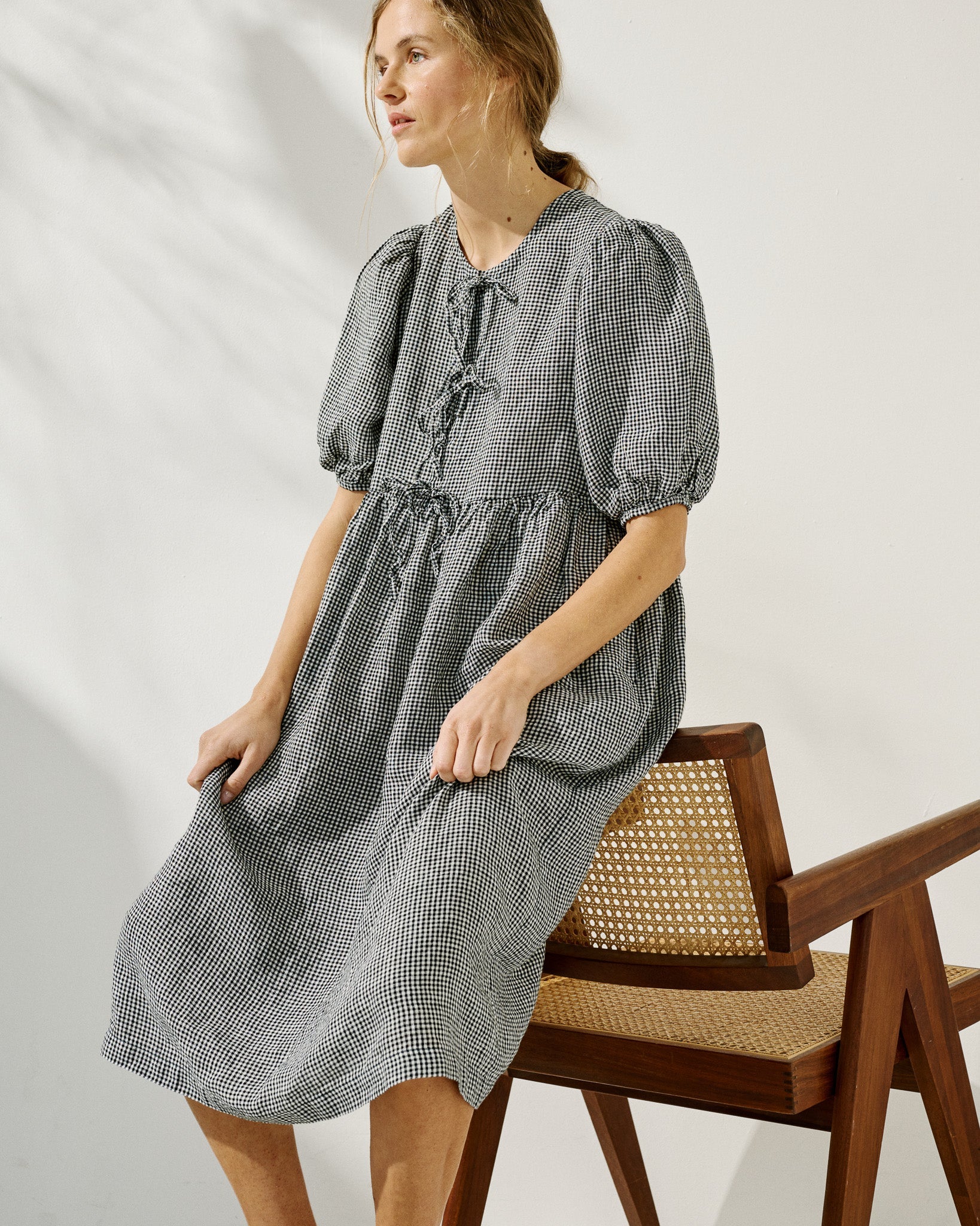 ROSEMARY bow tie linen dress (Light Weight Linen)