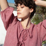 MELINA bow tie linen blouse (Light Weight Linen)