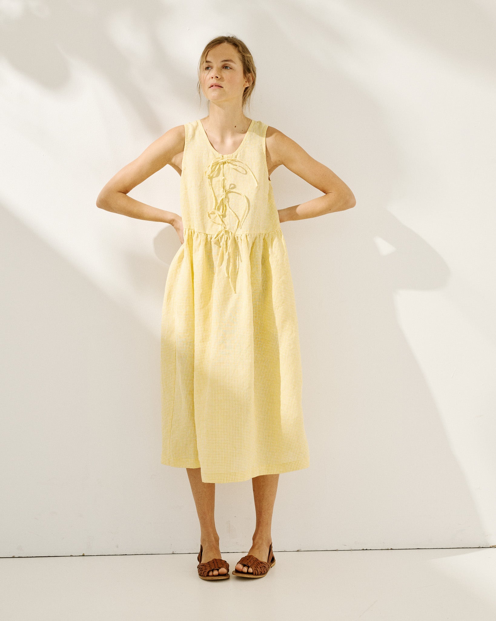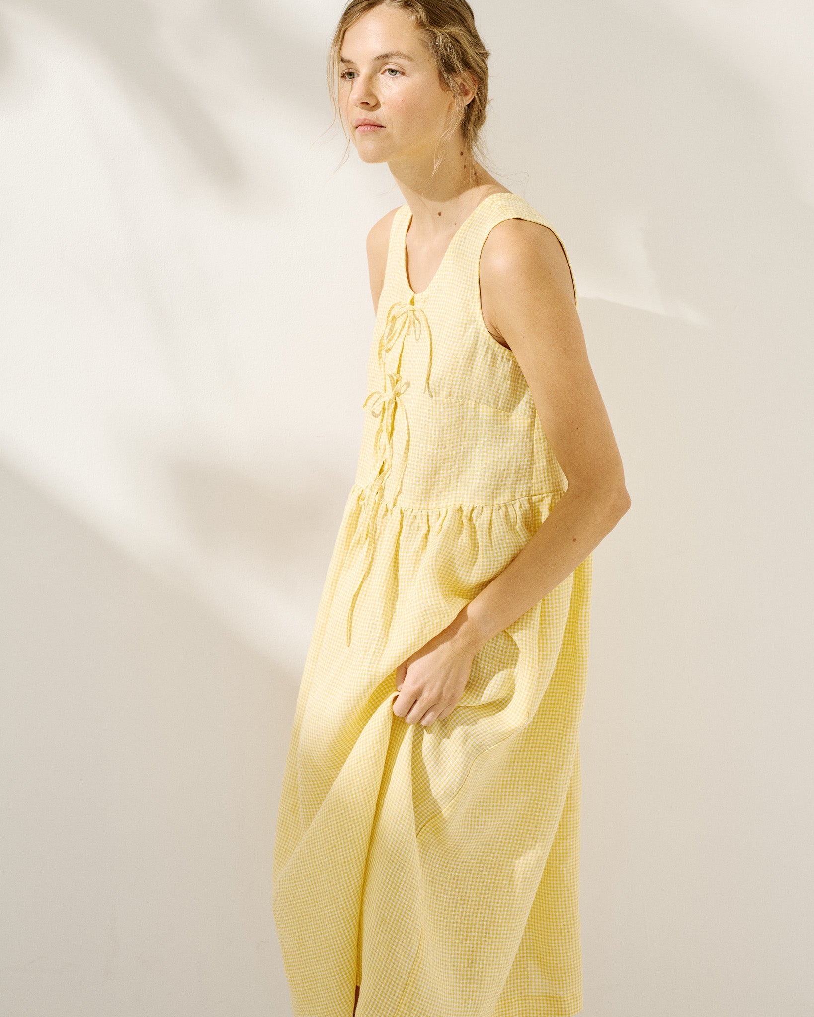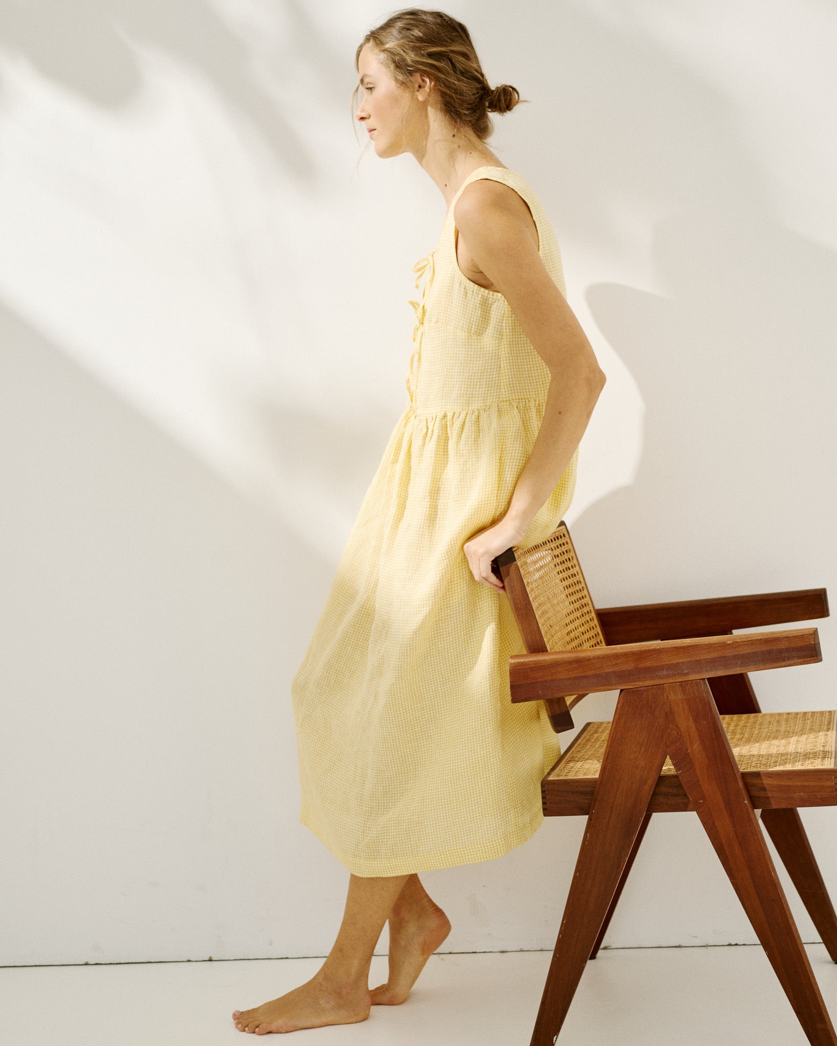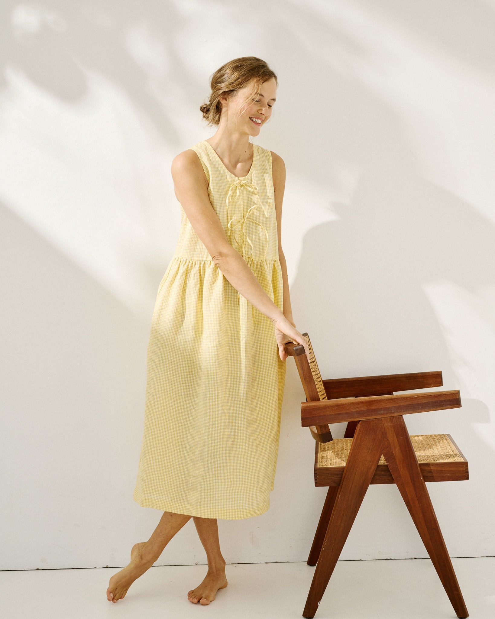 EDAM bow tie sleeveless linen dress (Light Weight Linen)