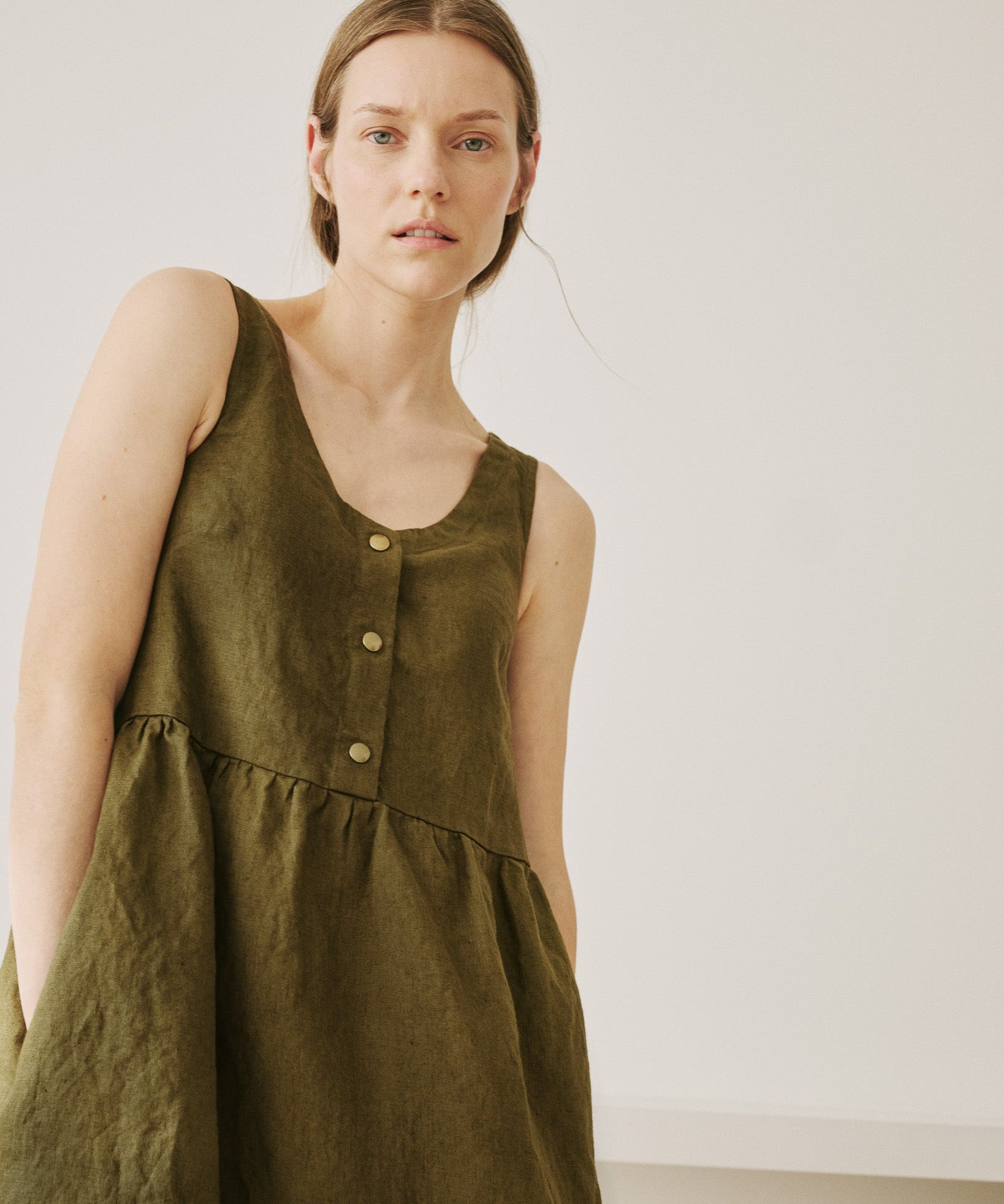 EUREKA ruffled hem buttoned linen skirt - notperfectlinen