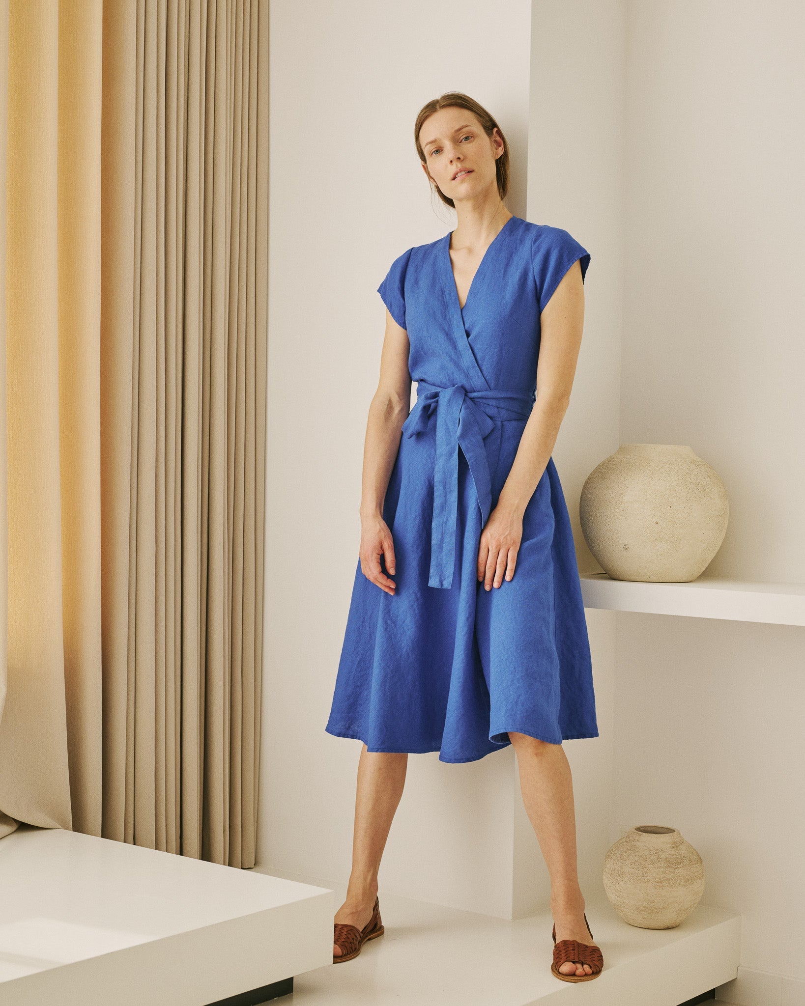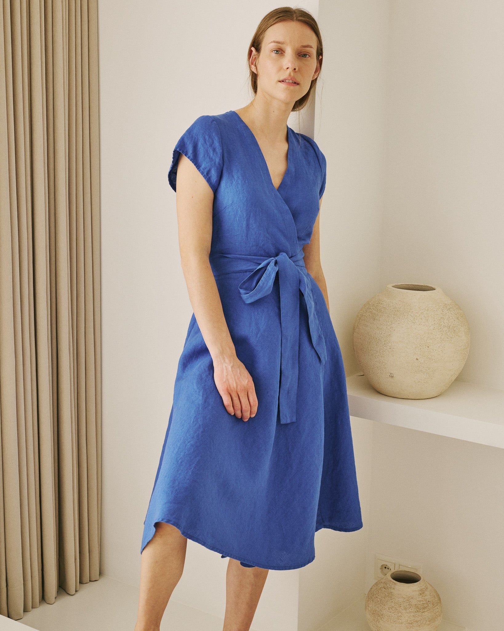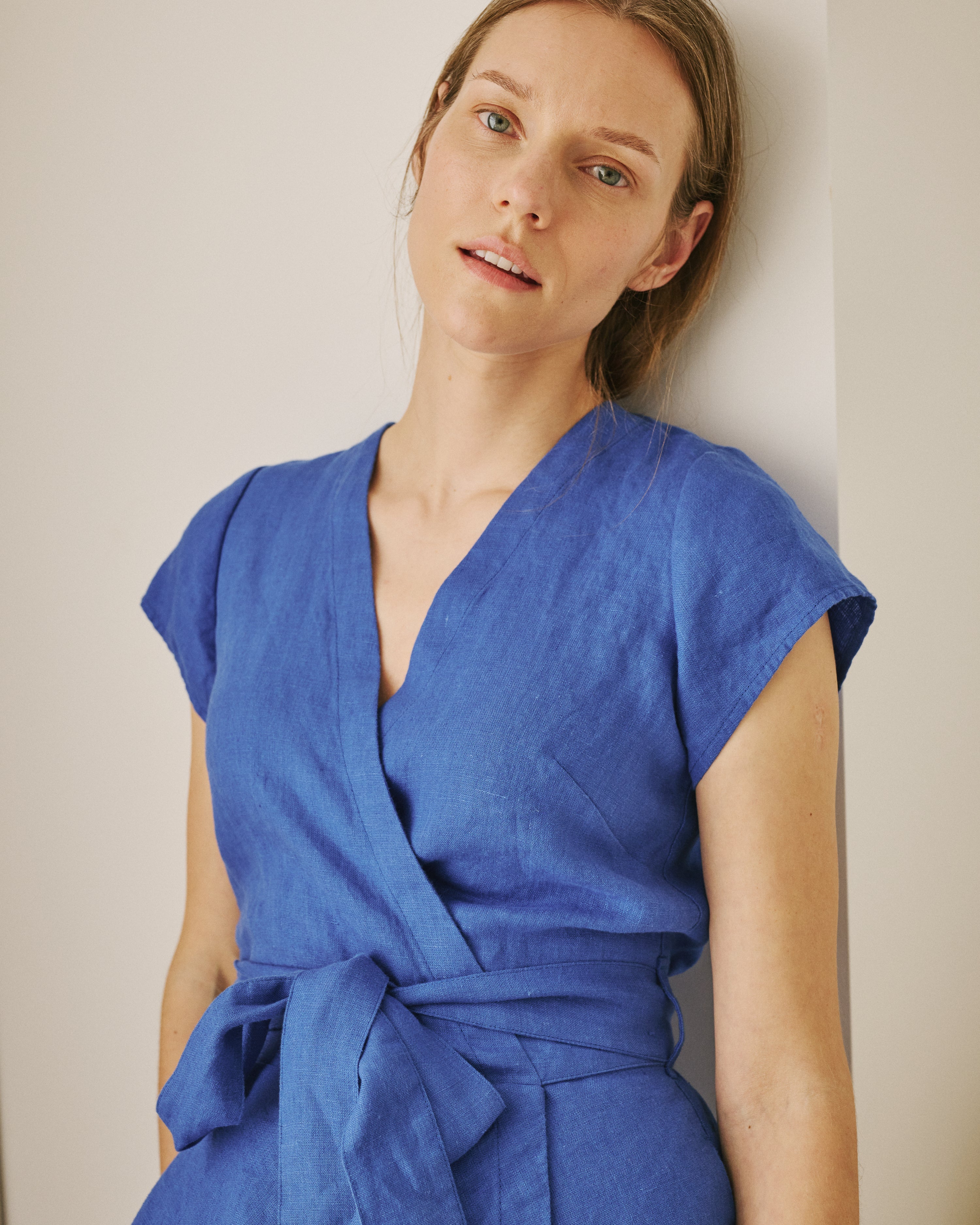 • Easy-to-wear wrap linen dress.