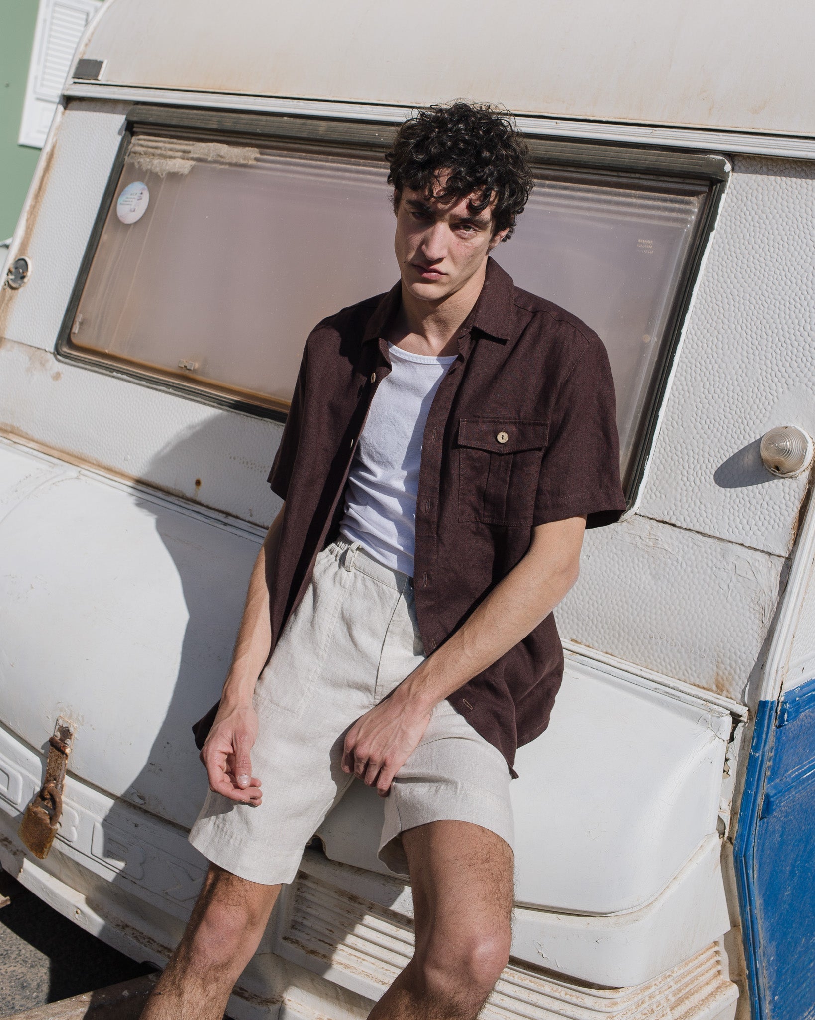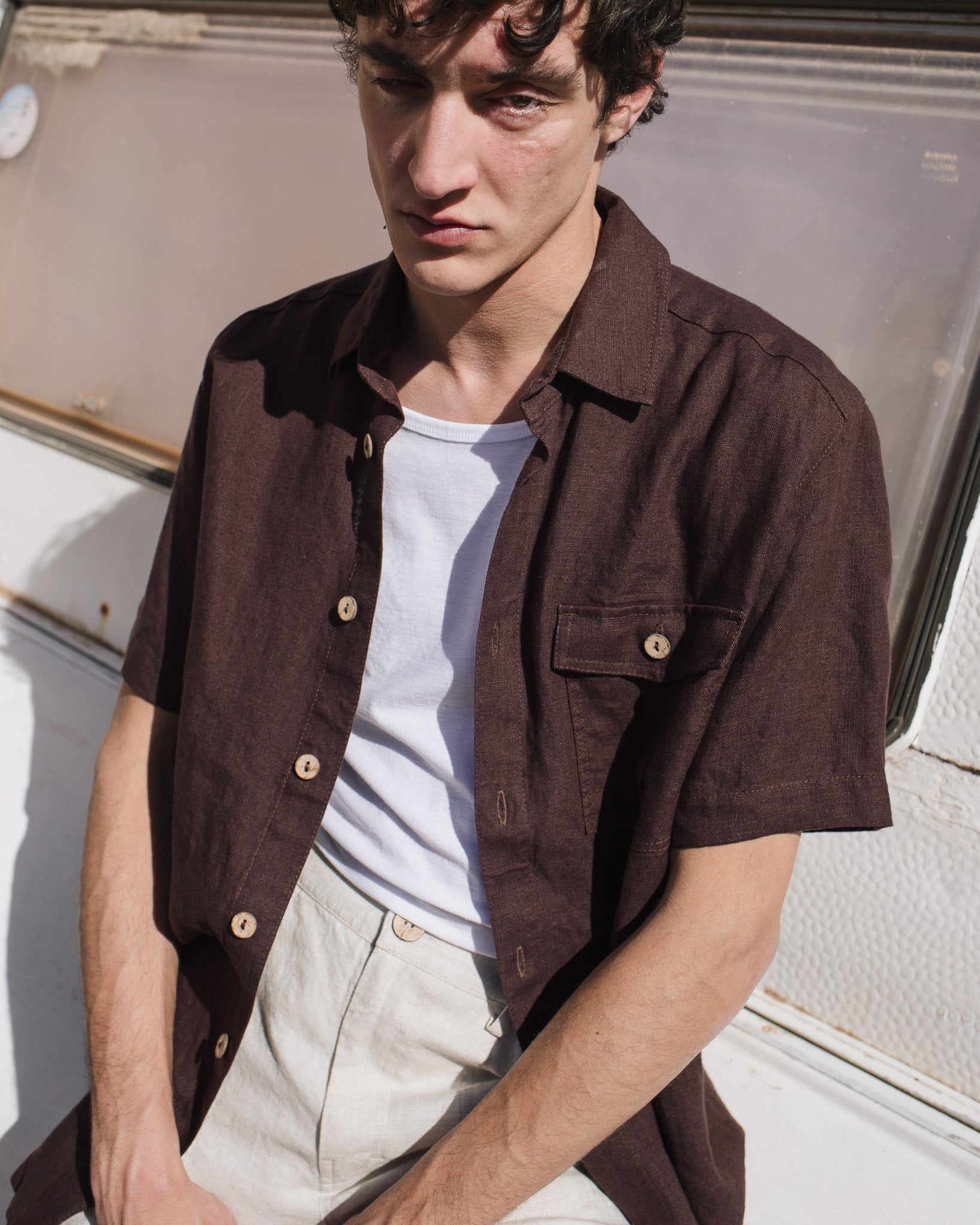 • Relaxed, loose, and breathable linen shirt with short/elbow sleeves;