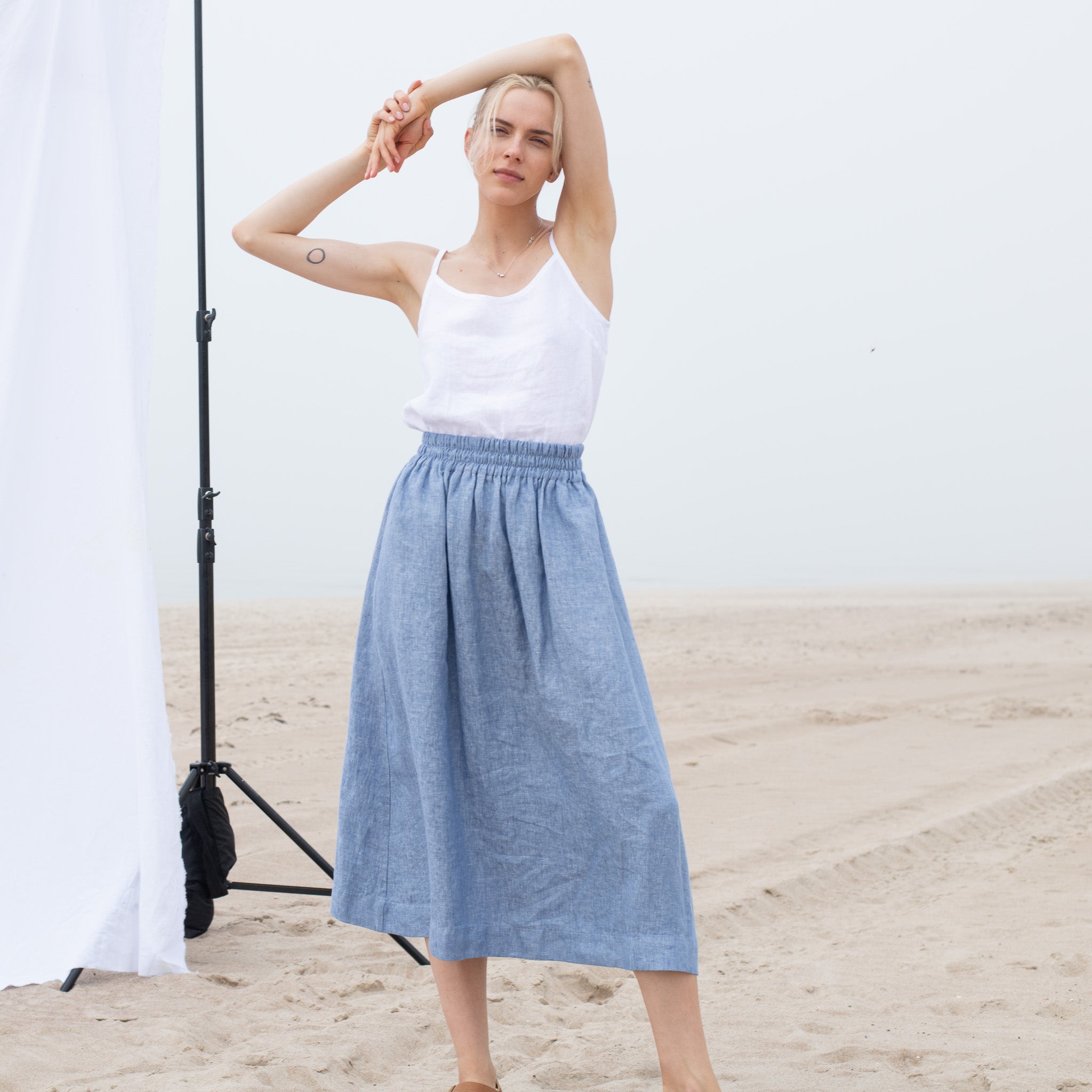 • Comfortable, gathered, a-line, midi-length skirt with an elastic waistband. And...drumroll please...it has pockets!