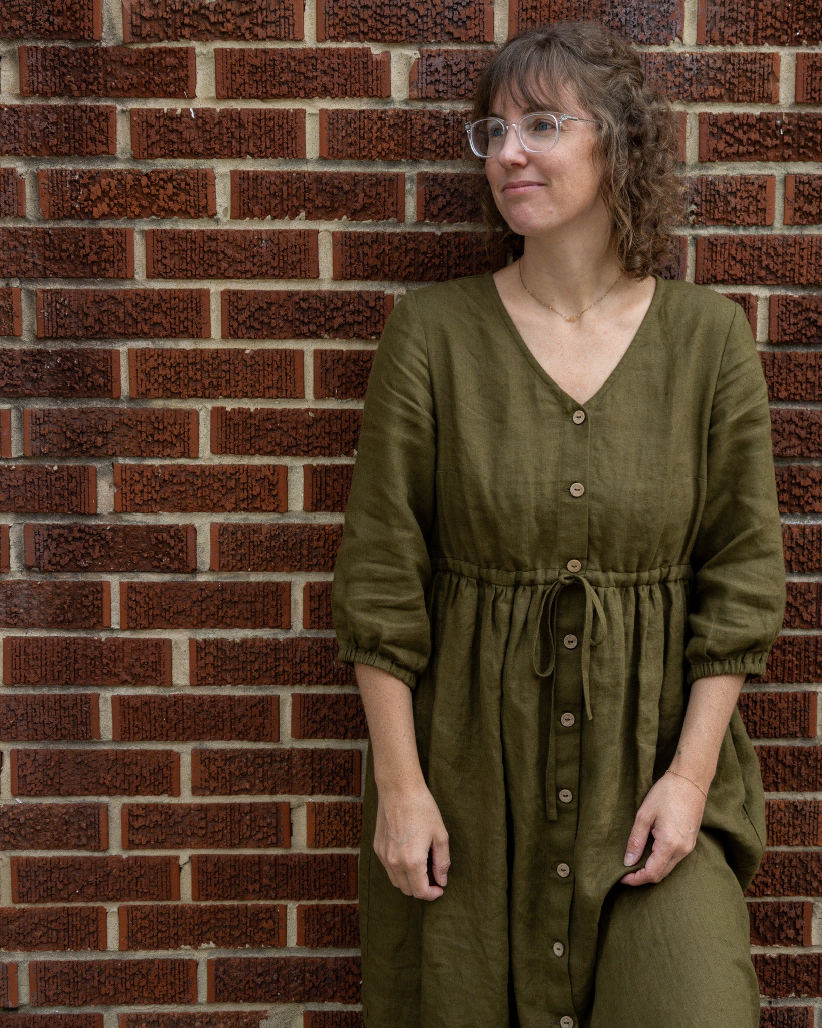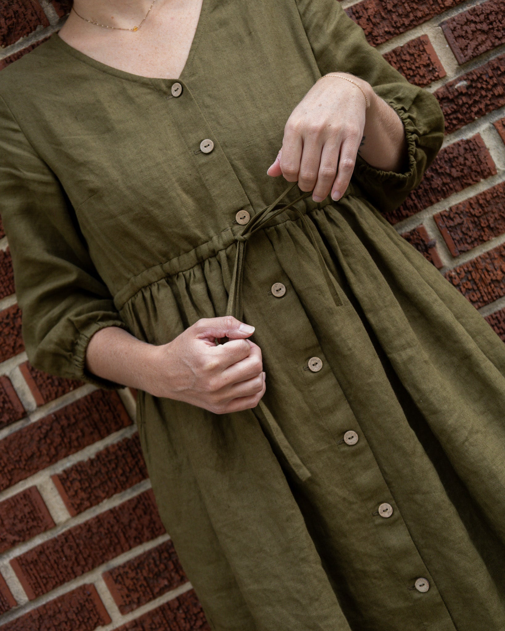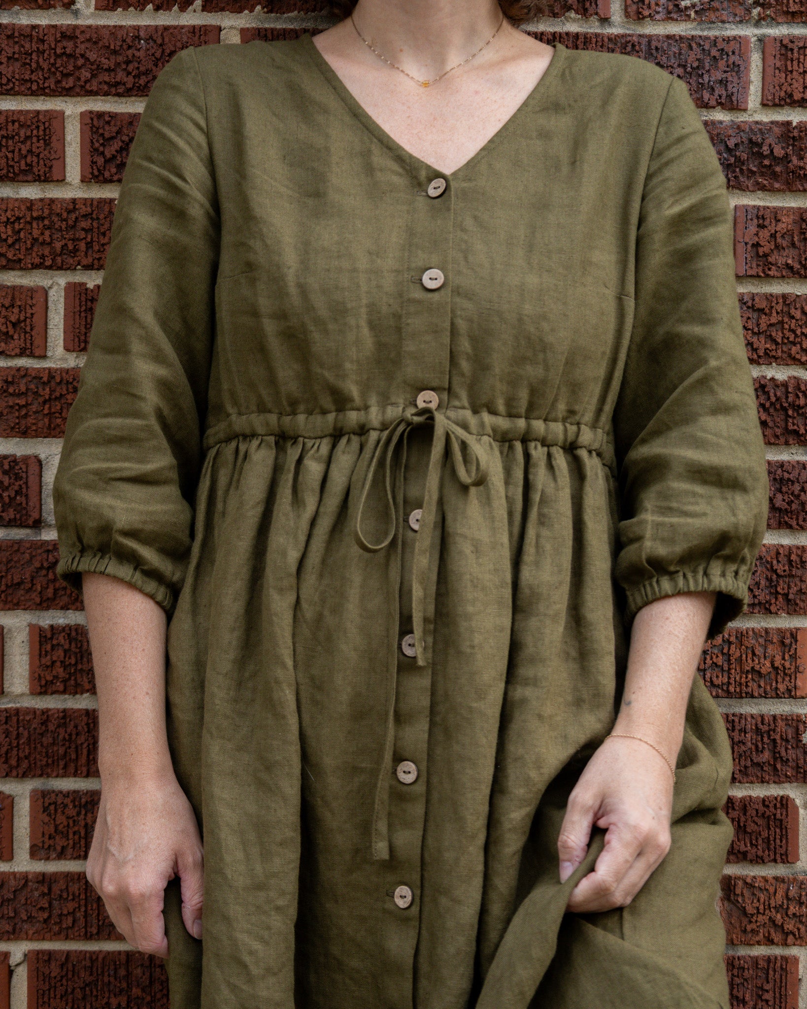 • Adjustable waist tie that can be cinched for shape or worn loosely.