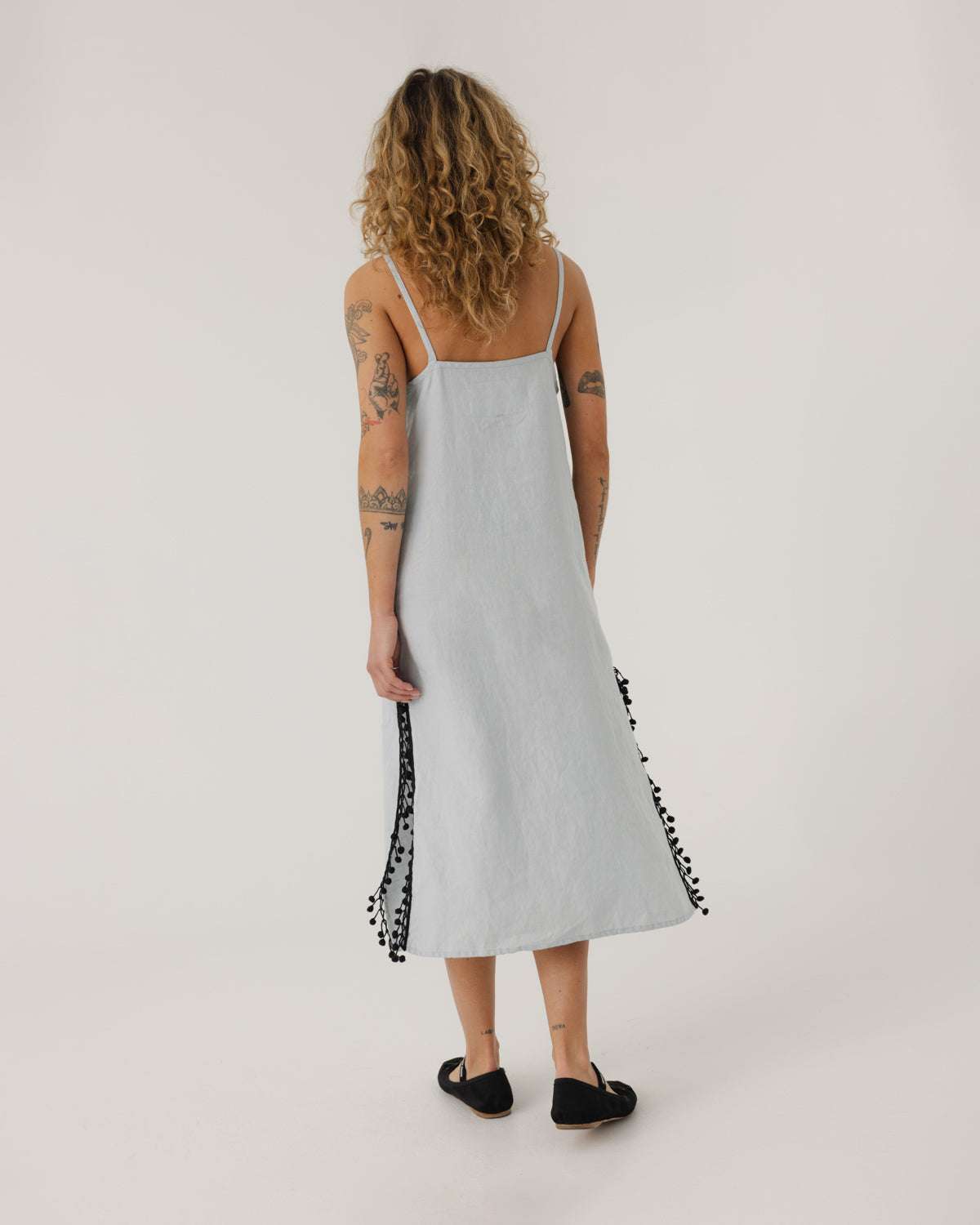 Cut in a relaxed, straight silhouette with slip straps and bust darts for a flattering fit, this dress is breathable, easy to wear, and fits neatly across the shoulders. Made from prewashed, mid-weight linen, it strikes the perfect balance between softness and structure.