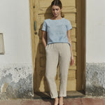 Linen, unlikely other fabrics, which are produced under intense chemical treatment, is a plant which grows without the need for many fertilizers or pesticides. This means that not only the fabric we put on our skin is free from extreme harmful substances, but also it does not damage our soil.