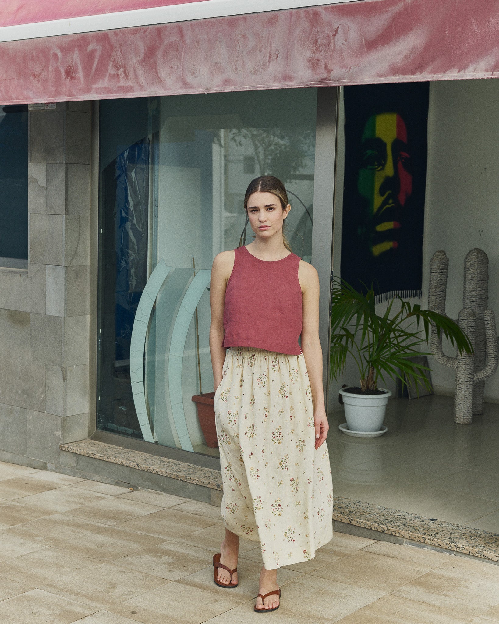 • Model wears size S/M in marsala, paired with a Sion skirt in butterfield.