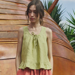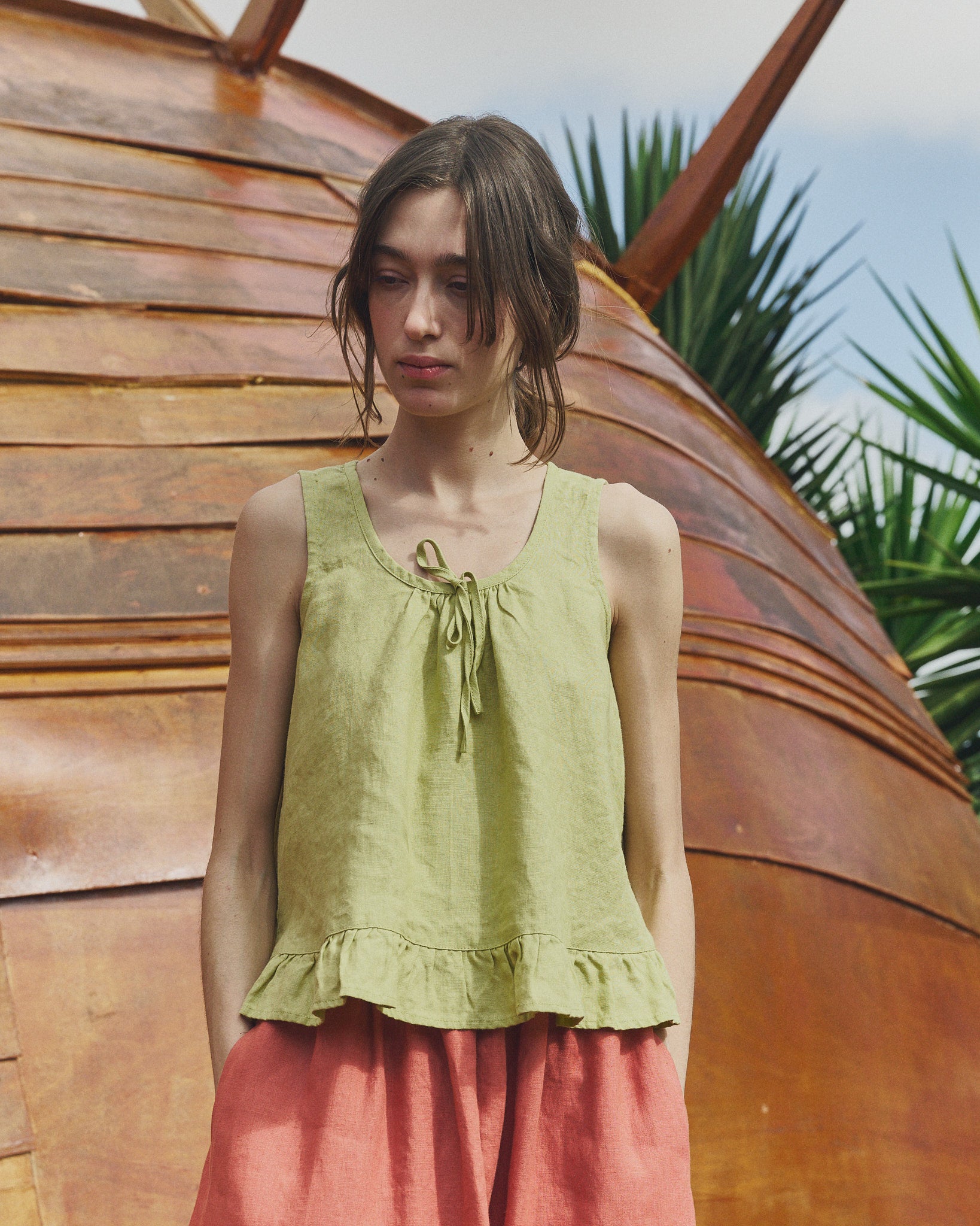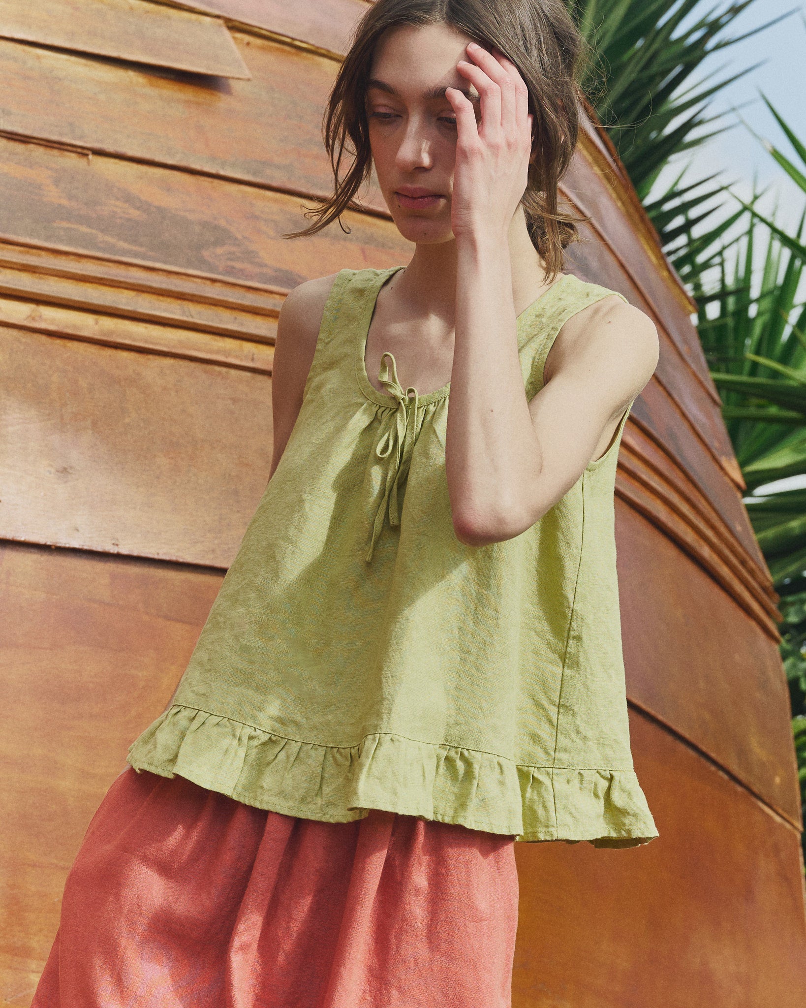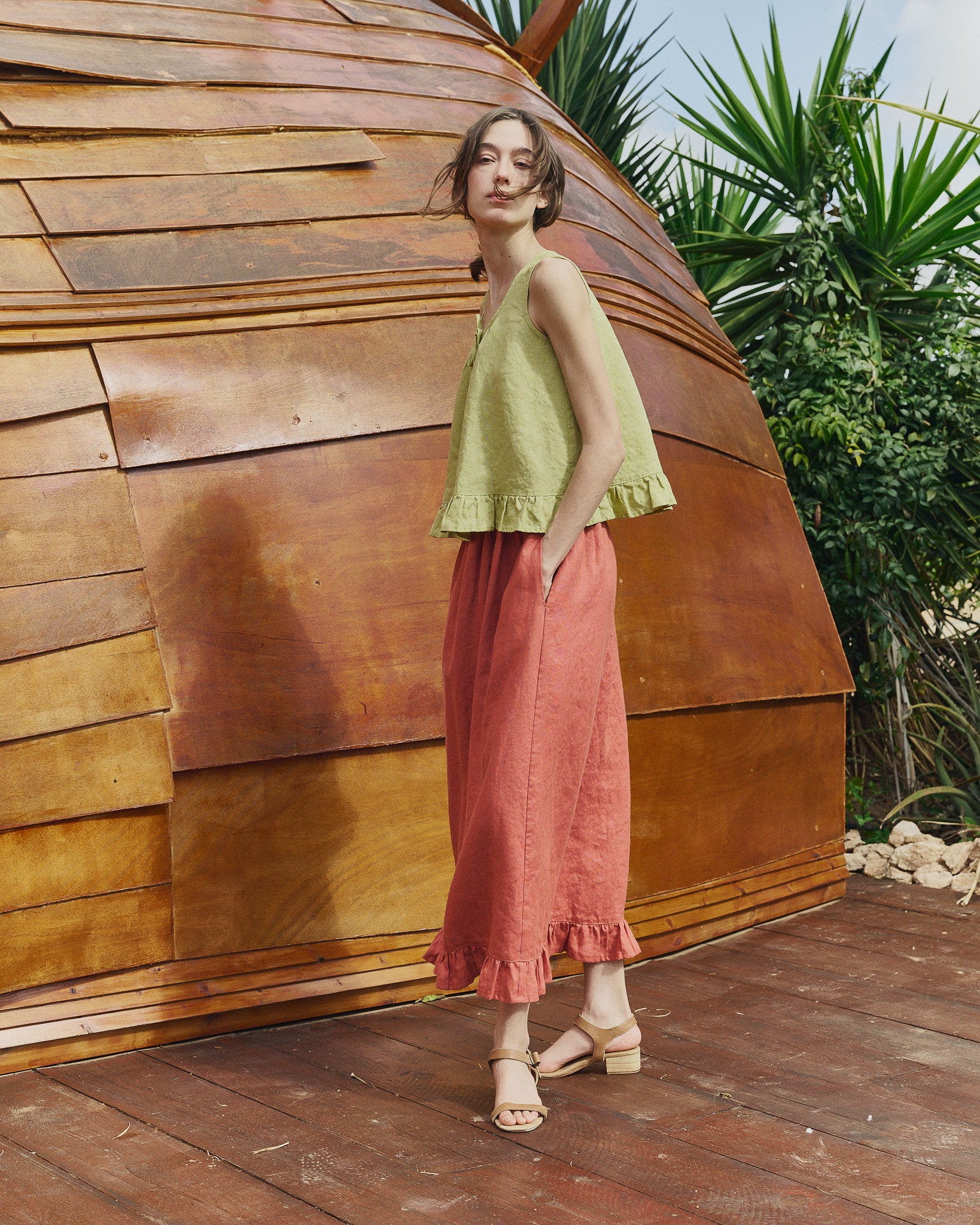 • Model wears size XS pistachio mist, paired with the Delilah skirt in Moroccan red.