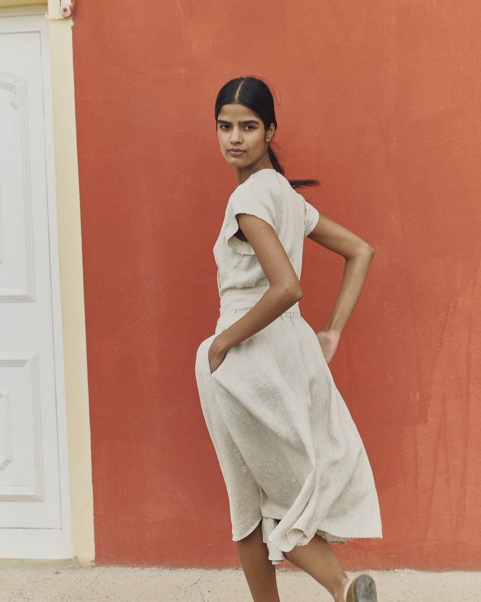 This linen garment is prewashed to minimize shrinkage. We recommend machine washing in lukewarm water (up to 40°C / 104°F) on a gentle cycle using a mild detergent.