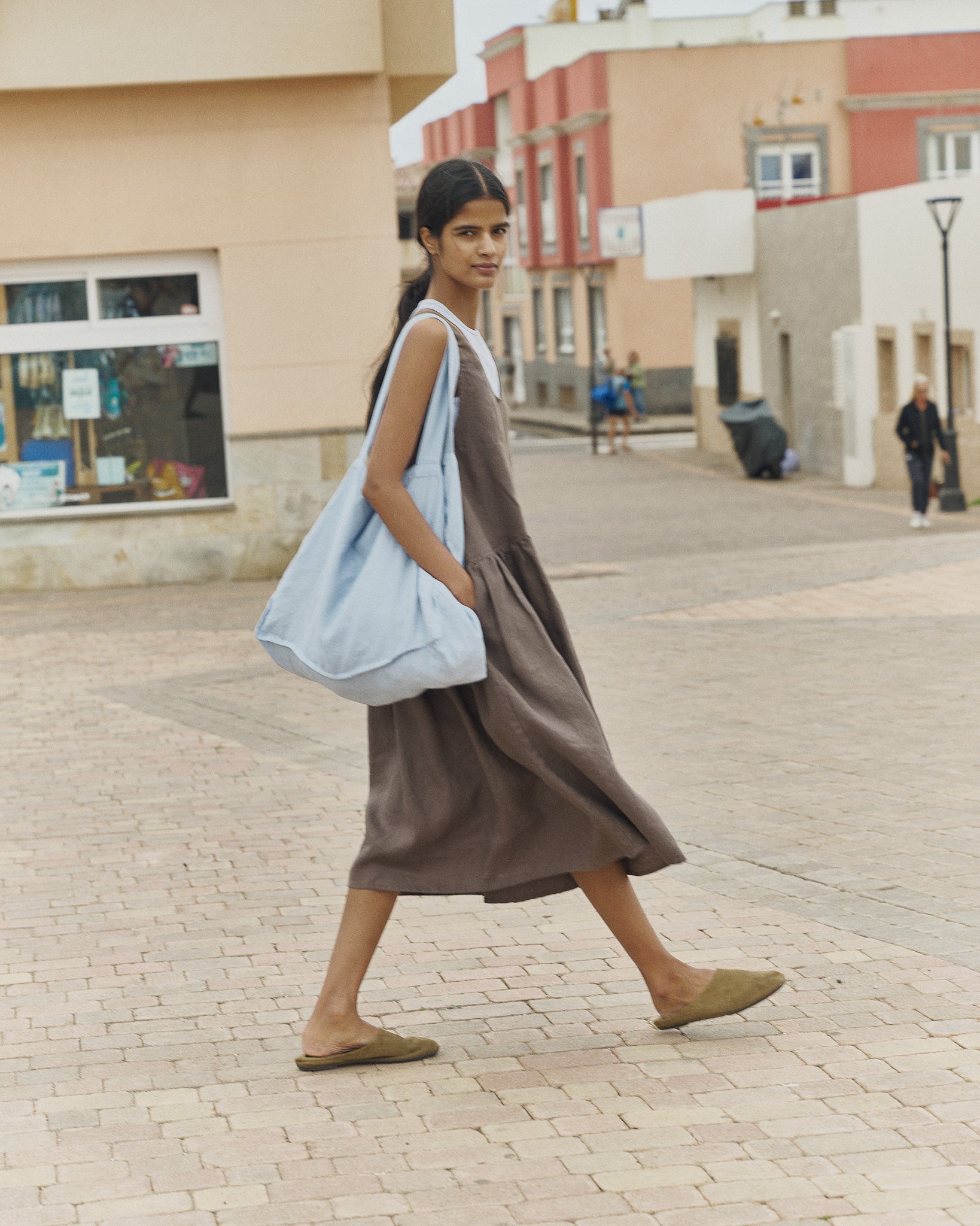 I've seen this bag on @lovefromleblon Instagram account and was smitten by the idea of a tote in the colour Saffron. Got myself totally influenced there and I don't regret it. Saffron is a blast of colour and the bag is much better than a similar one that I bought at a linen shop on Etsy a while ago (good shop, not so good tote:-). The witdh of the straps makes it more comfortable to carry it and there is an inside bag in the bag that comes very handy. I love it. Thank you!