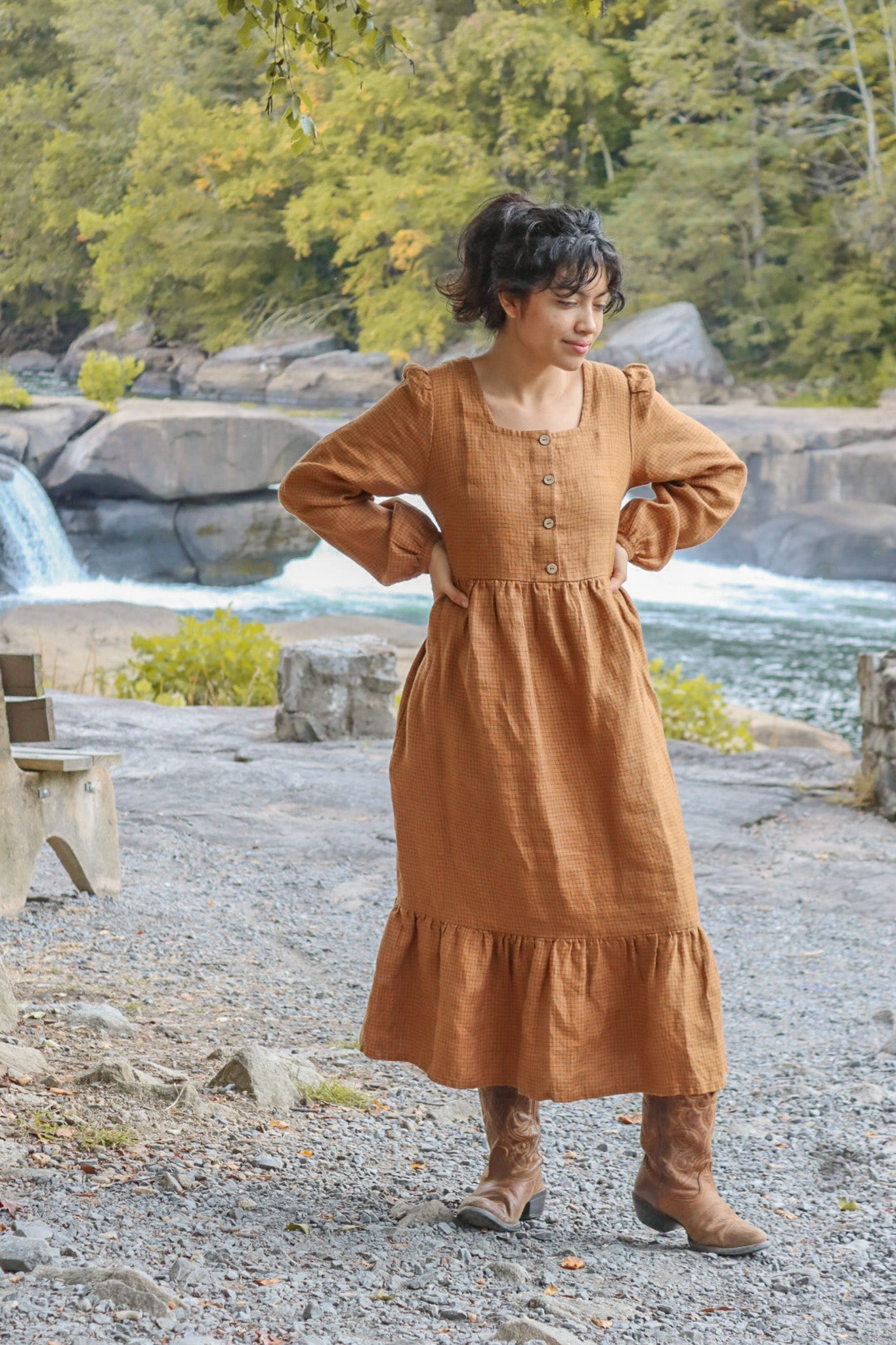 • Washed, soft, long sleeve dress with the softly gathered skirt.