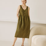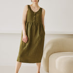 VALLEY front brass snaps linen dress