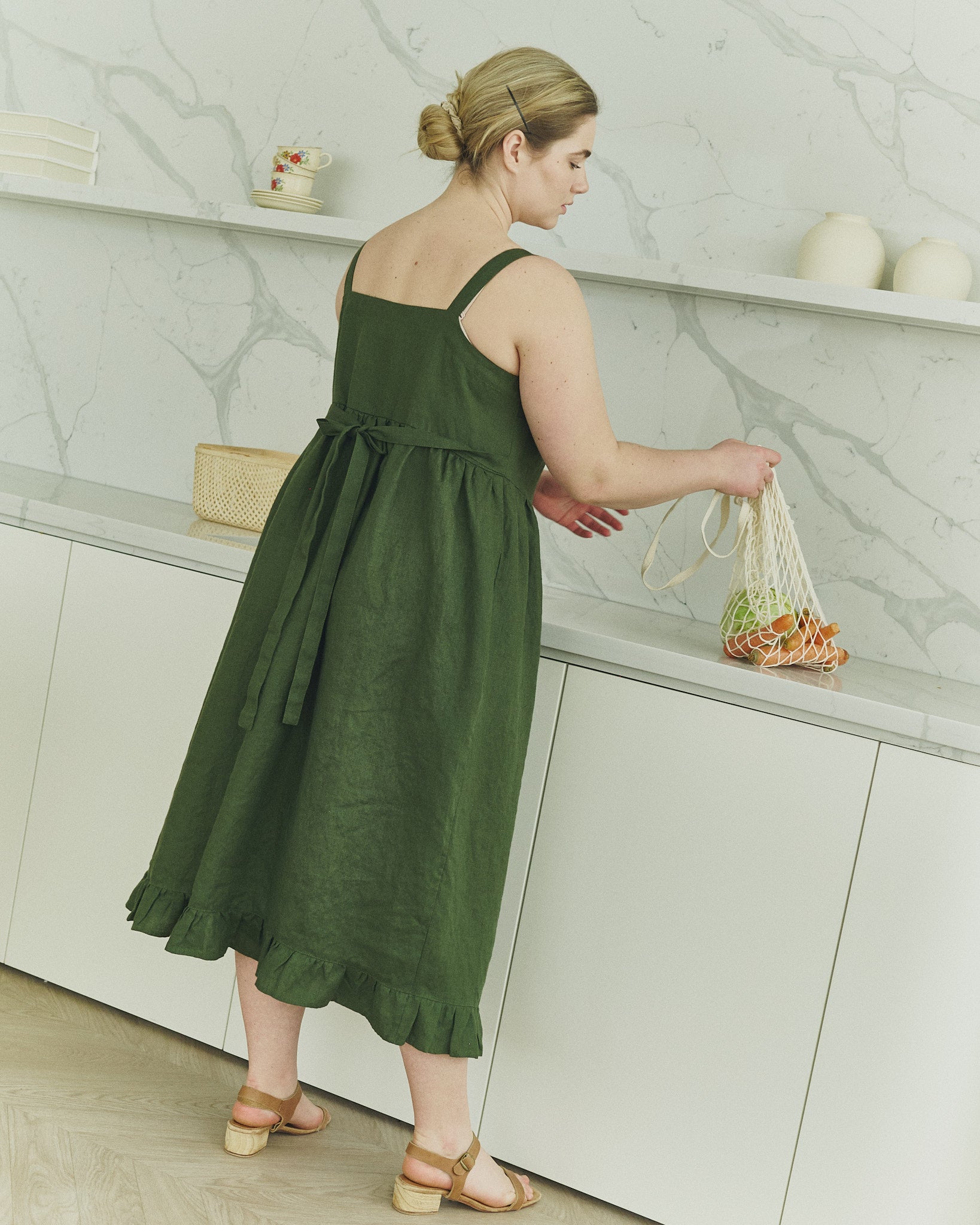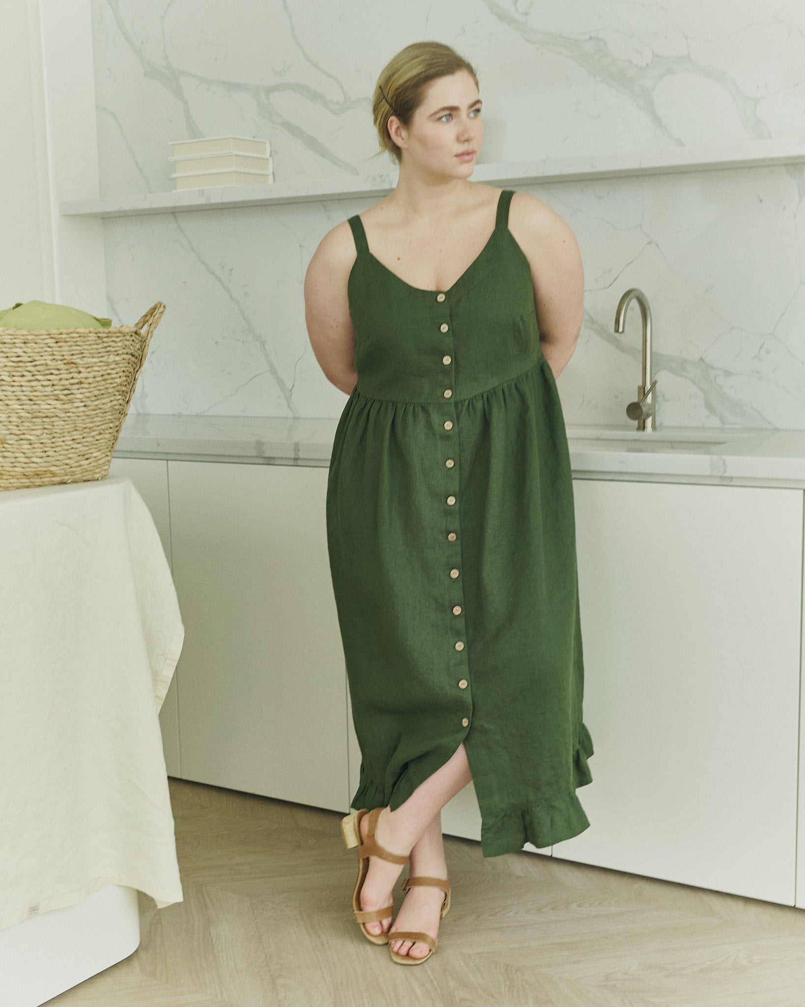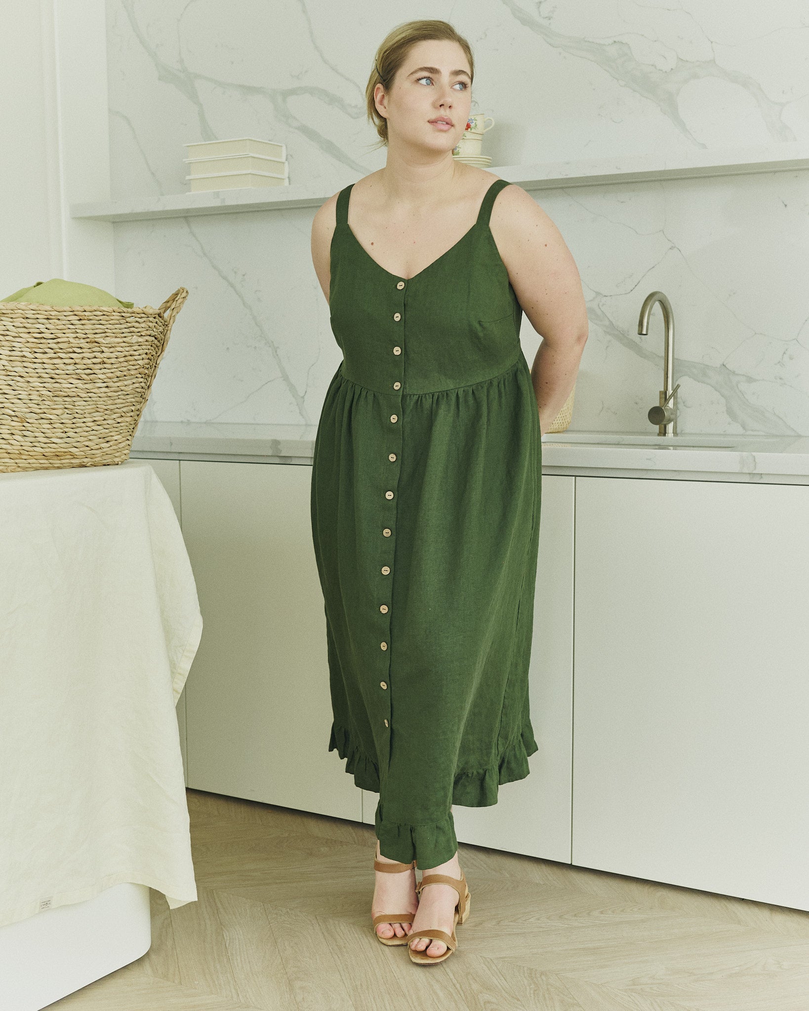 This was a custom oder. I asked for the skirt part to be like the Magnolia Skirt and it turned out even better than I was hoping for. Thank you so much! This is the colour Loden and a Sarah Dress in size S. (I am 168cm and have a 82cm bust. )