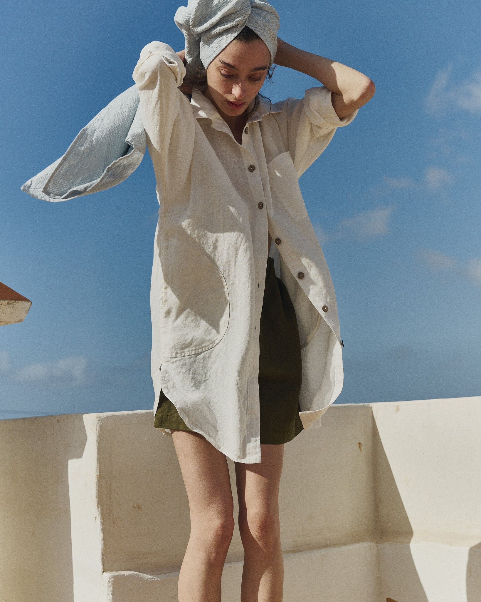 This linen garment is prewashed to minimize shrinkage. We recommend machine washing in lukewarm water (up to 40°C / 104°F) on a gentle cycle using a mild detergent.