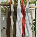 • Linen towels are highly absorbent, yet they also dry very quickly, especially when left in the sun to dry. To refresh your towel, it can be machine-washed and tumble-dried on low.