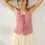 • Designed with a round neckline, it is adorned with delicate bow ties at the front.