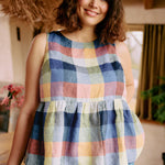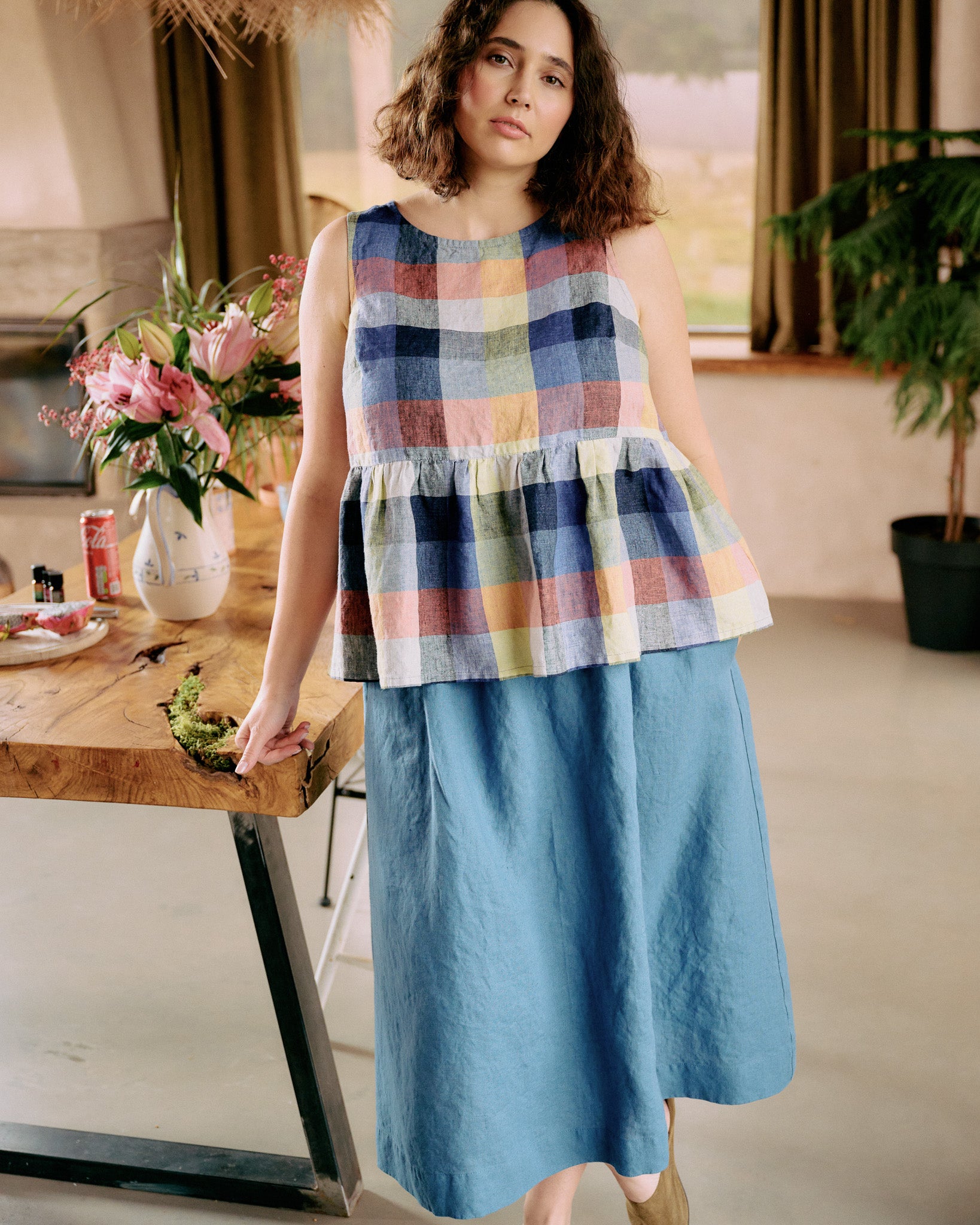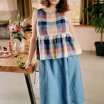 • Model wears XL in pastel multicolor, paired with Sion skirt in indigo.