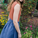 • Comfortable, gathered, a-line, midi-length skirt with an elastic waistband. And...drumroll please...it has pockets!