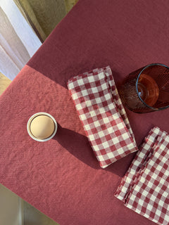 • The colors of the linen napkins listed as follows - marsala gingham, amber cheks, cream and olive.