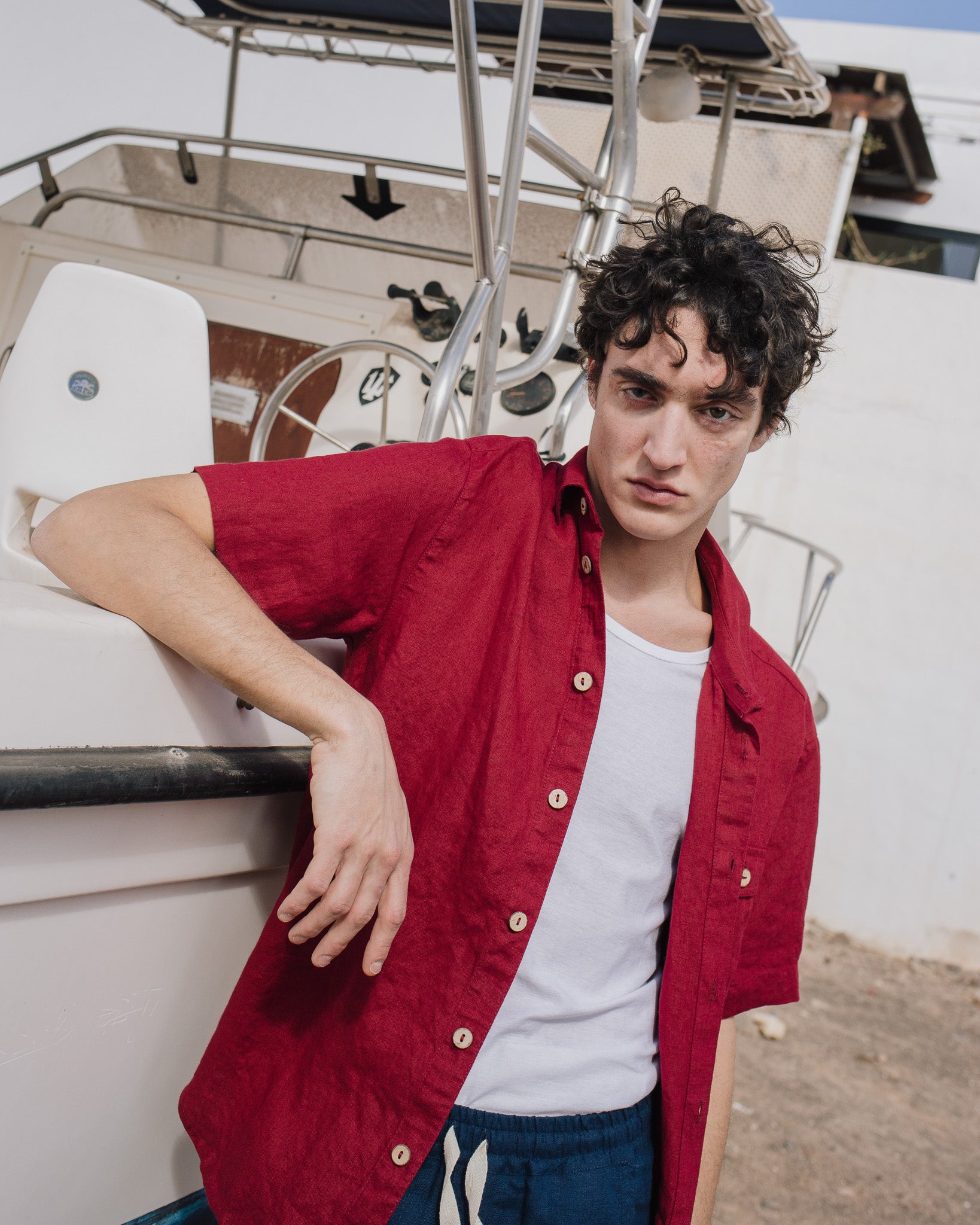 • Relaxed, loose, and breathable linen shirt with short/elbow sleeves;