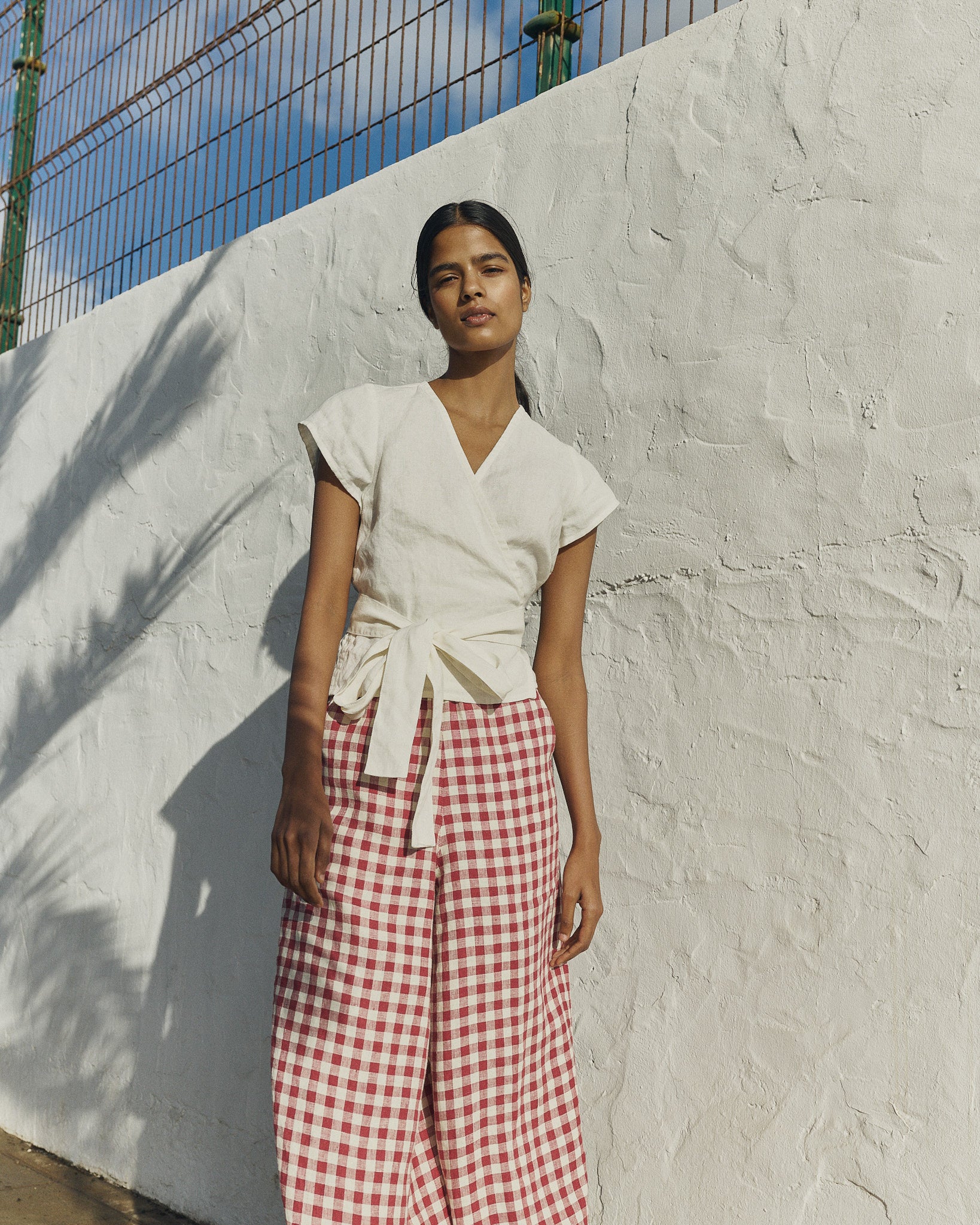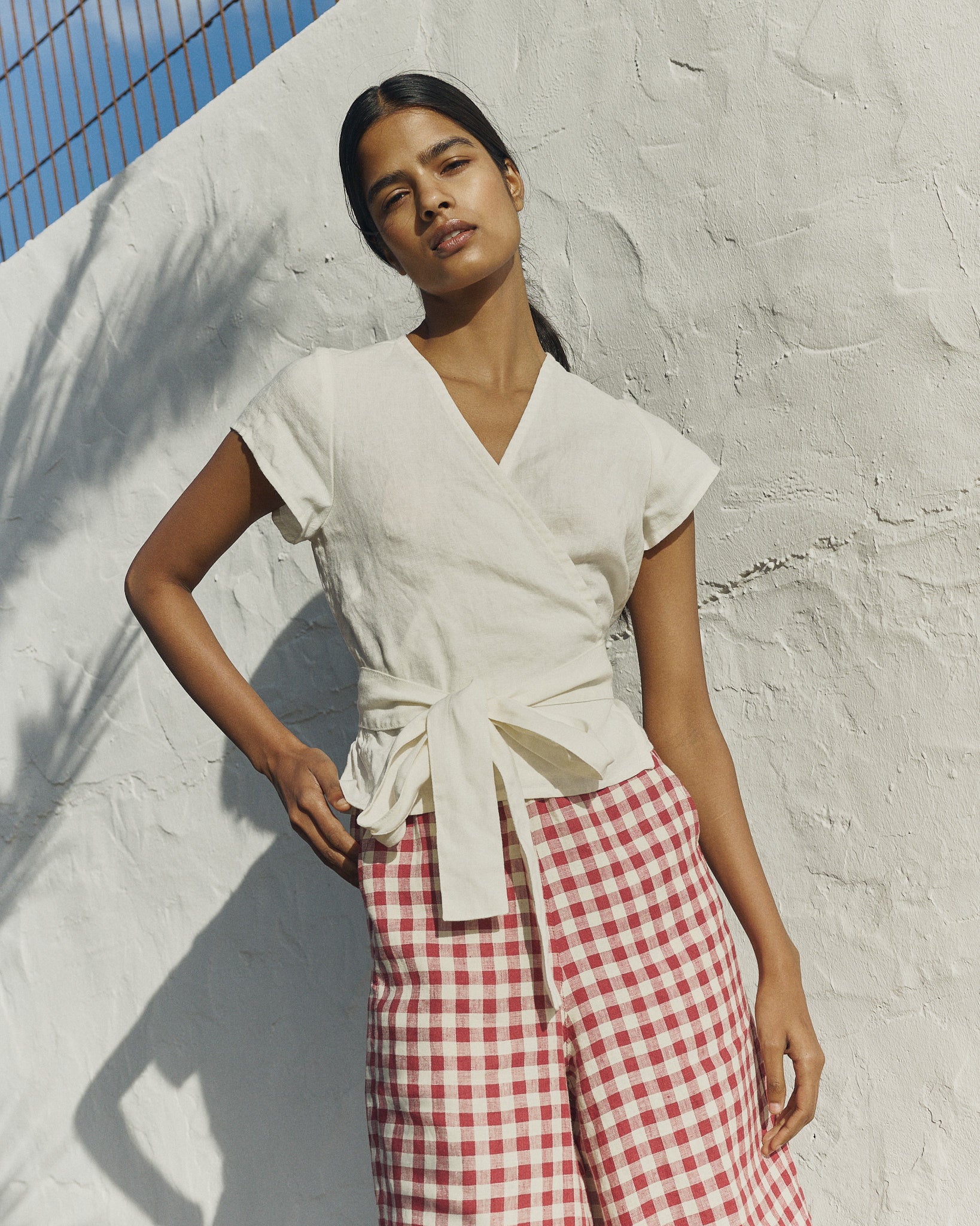 Product: MADRID cropped linen wrap top