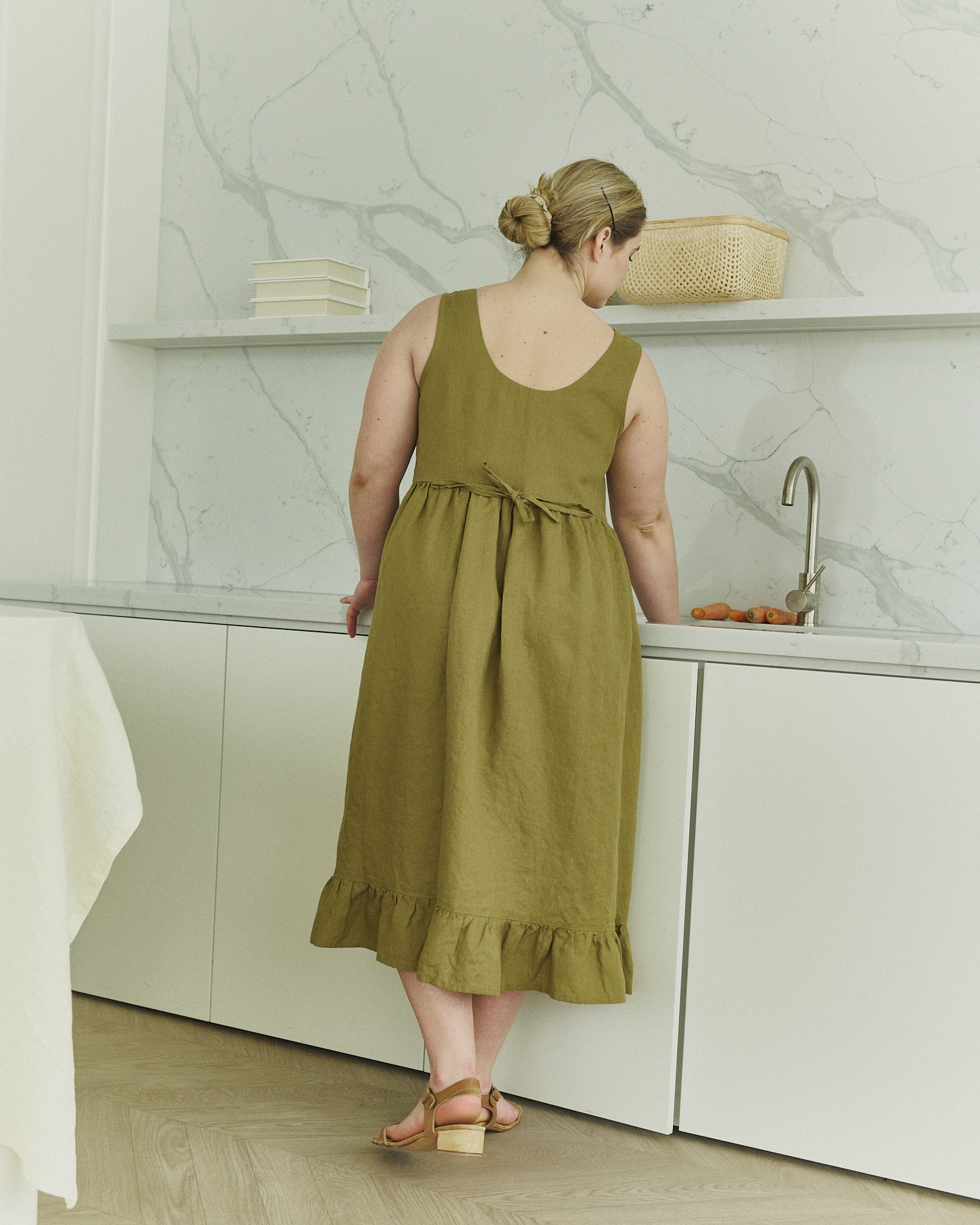 This linen garment is prewashed to minimize shrinkage. We recommend machine washing in lukewarm water (up to 40°C / 104°F) on a gentle cycle using a mild detergent.