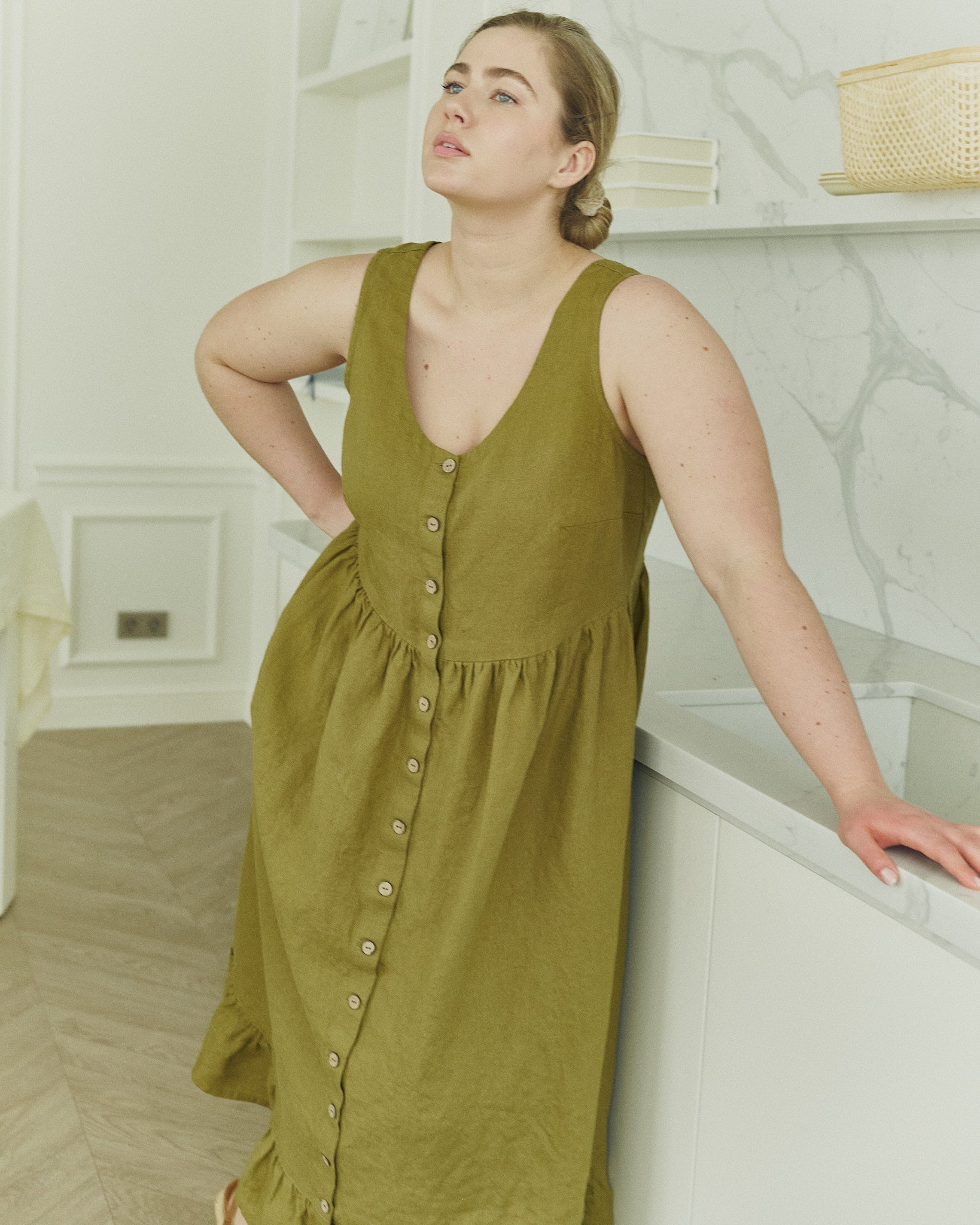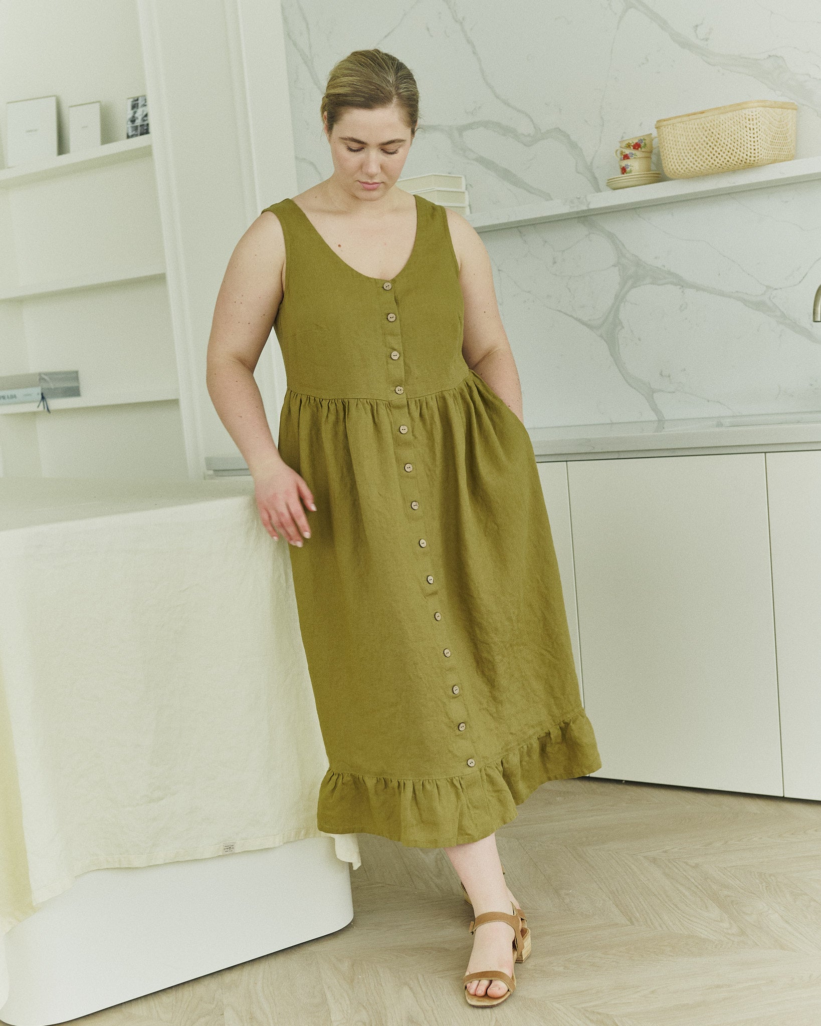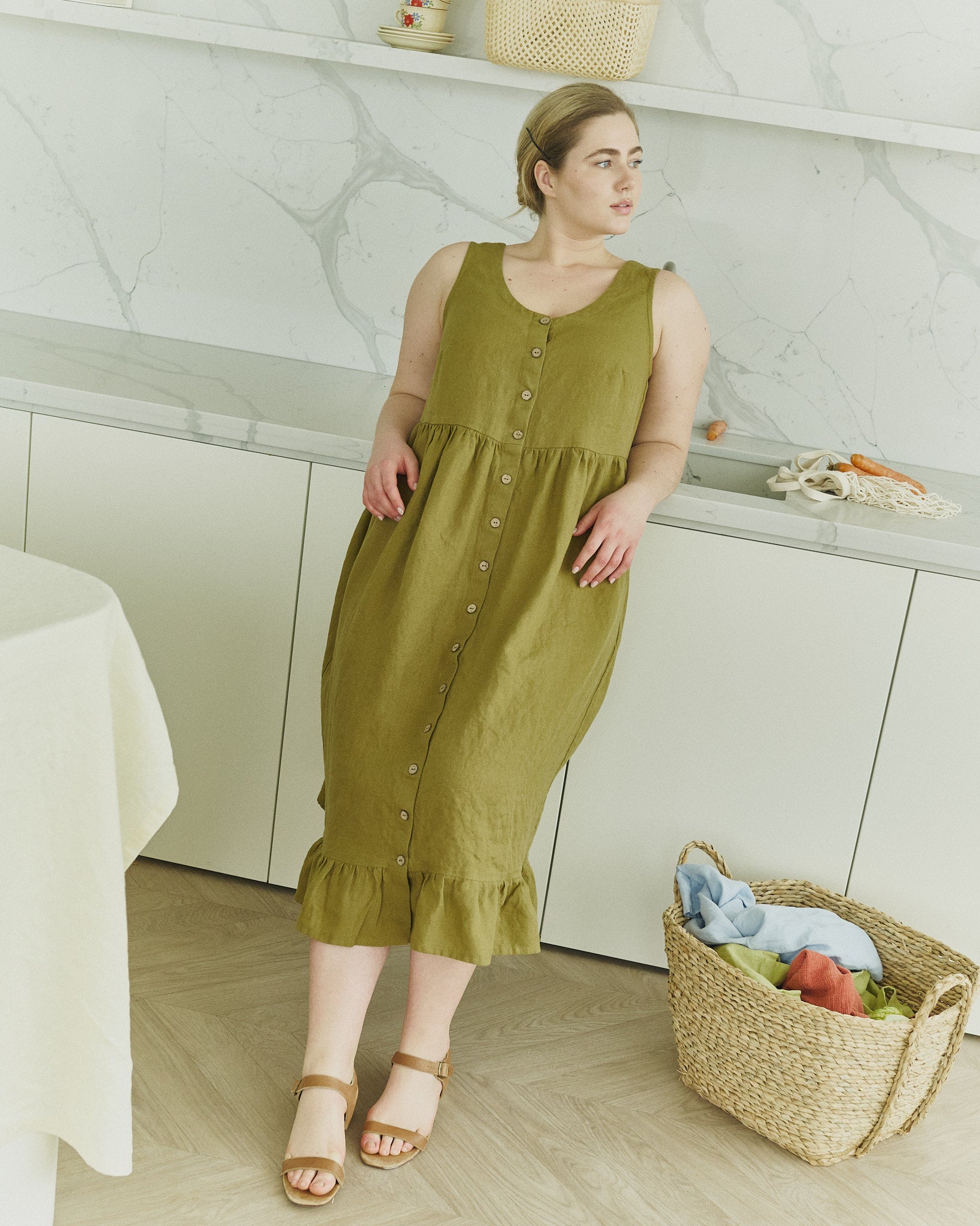 Product: SARAH button down slip linen dress