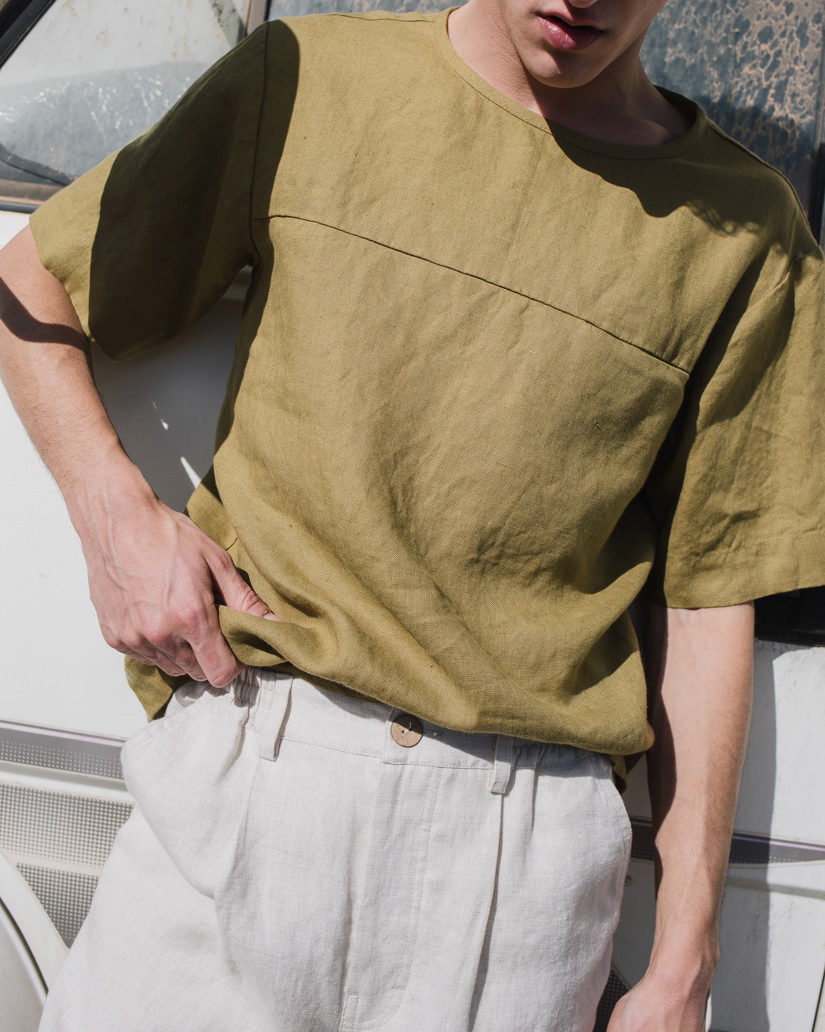• Relaxed, loose, and breathable linen t-shirt;