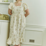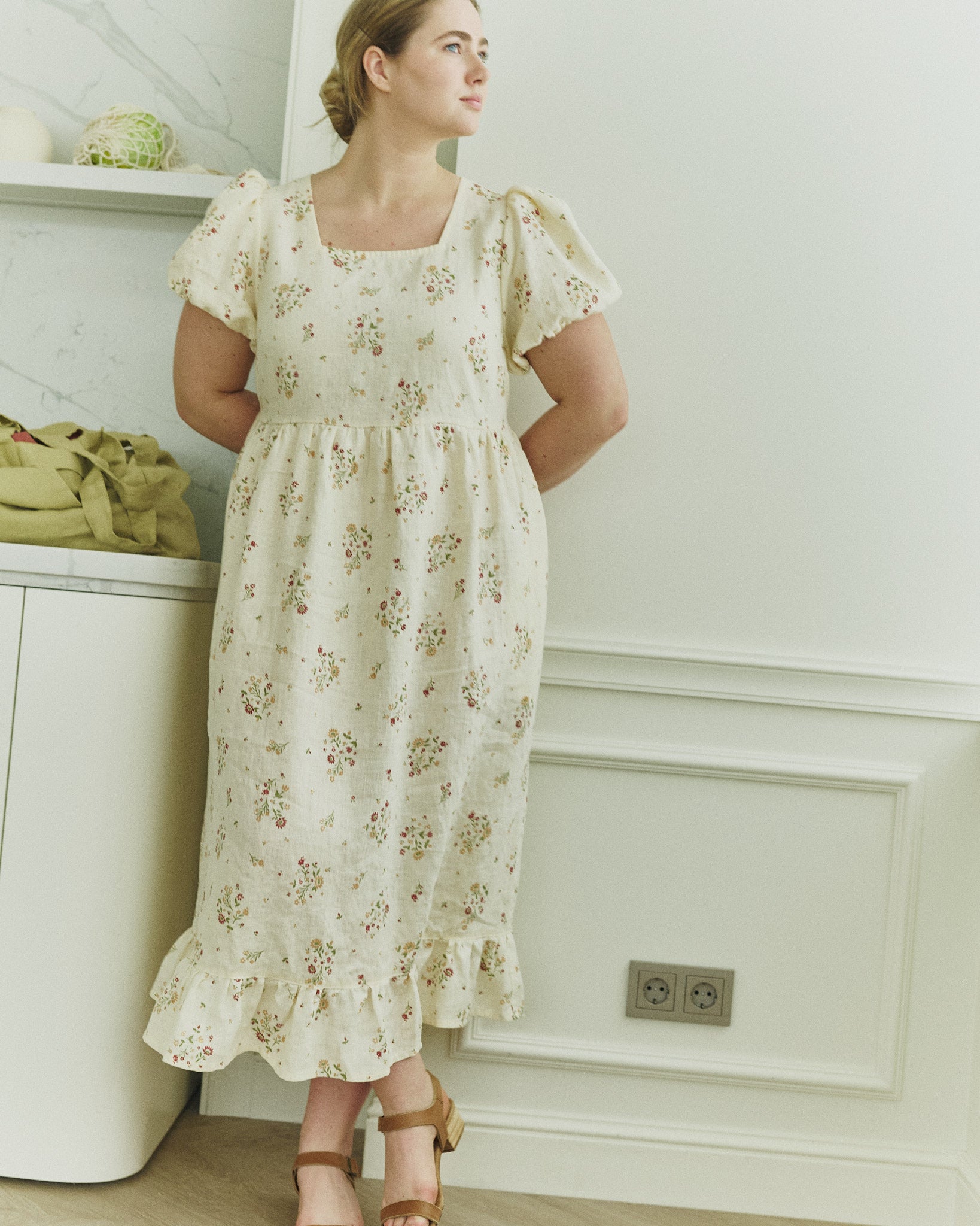The Odesa is a stunning dress. It was so thoughtfully created and the neckline is amazing.\n\nI have buttons for nursing access, drop ruffle added, and waist ties.\n\nI sized down for this dress to a XS (I am a typical small in most other dresses).\n\nI have received so many compliments on this dress 😍