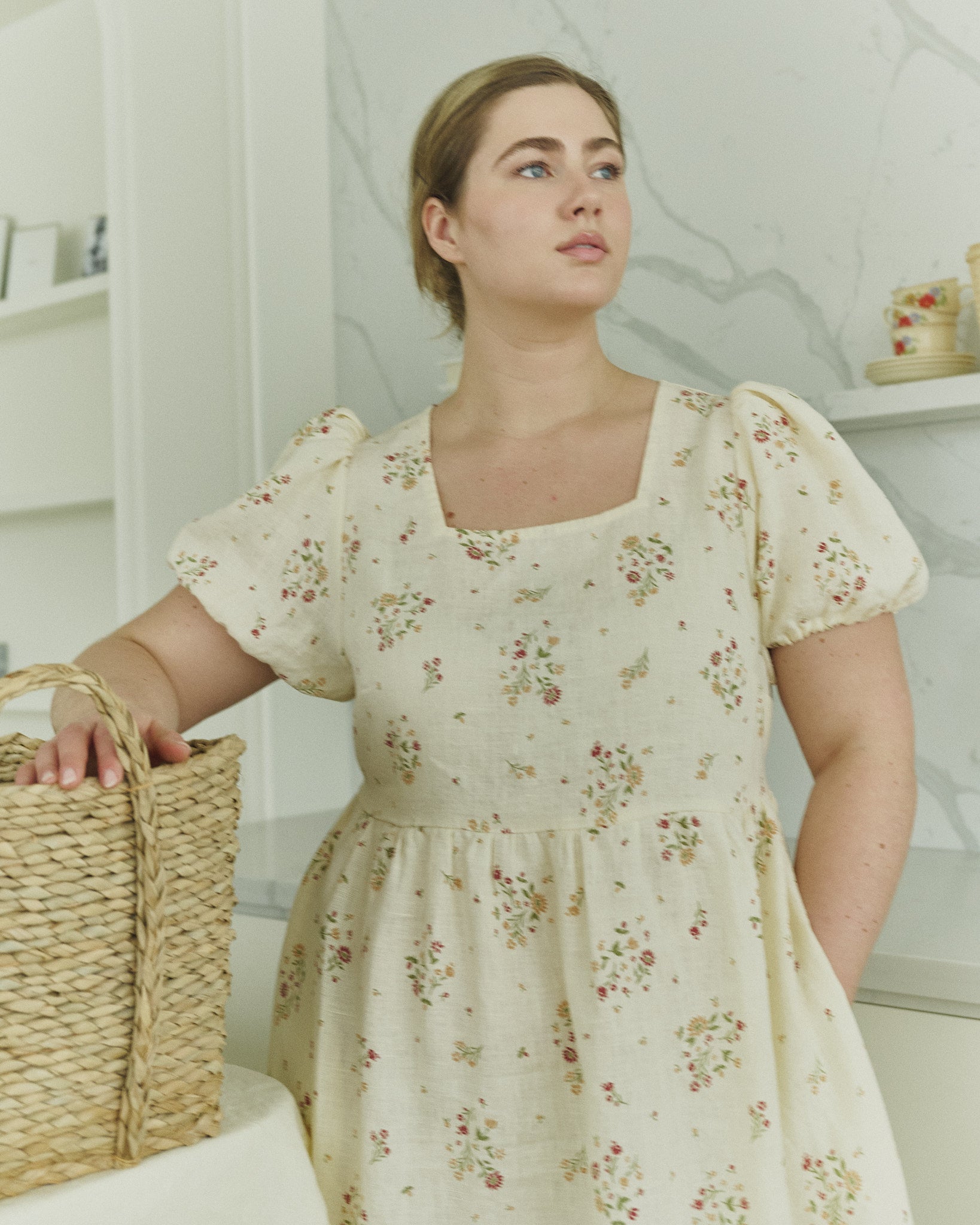 I love the square neck, I got mine with waist ties in the back so I could make it more fitted if I wanted. The colour is beautiful and it's such a beautiful dress.