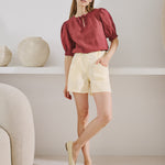 • Puff elbow length sleeves with tiny ruffle finishing.