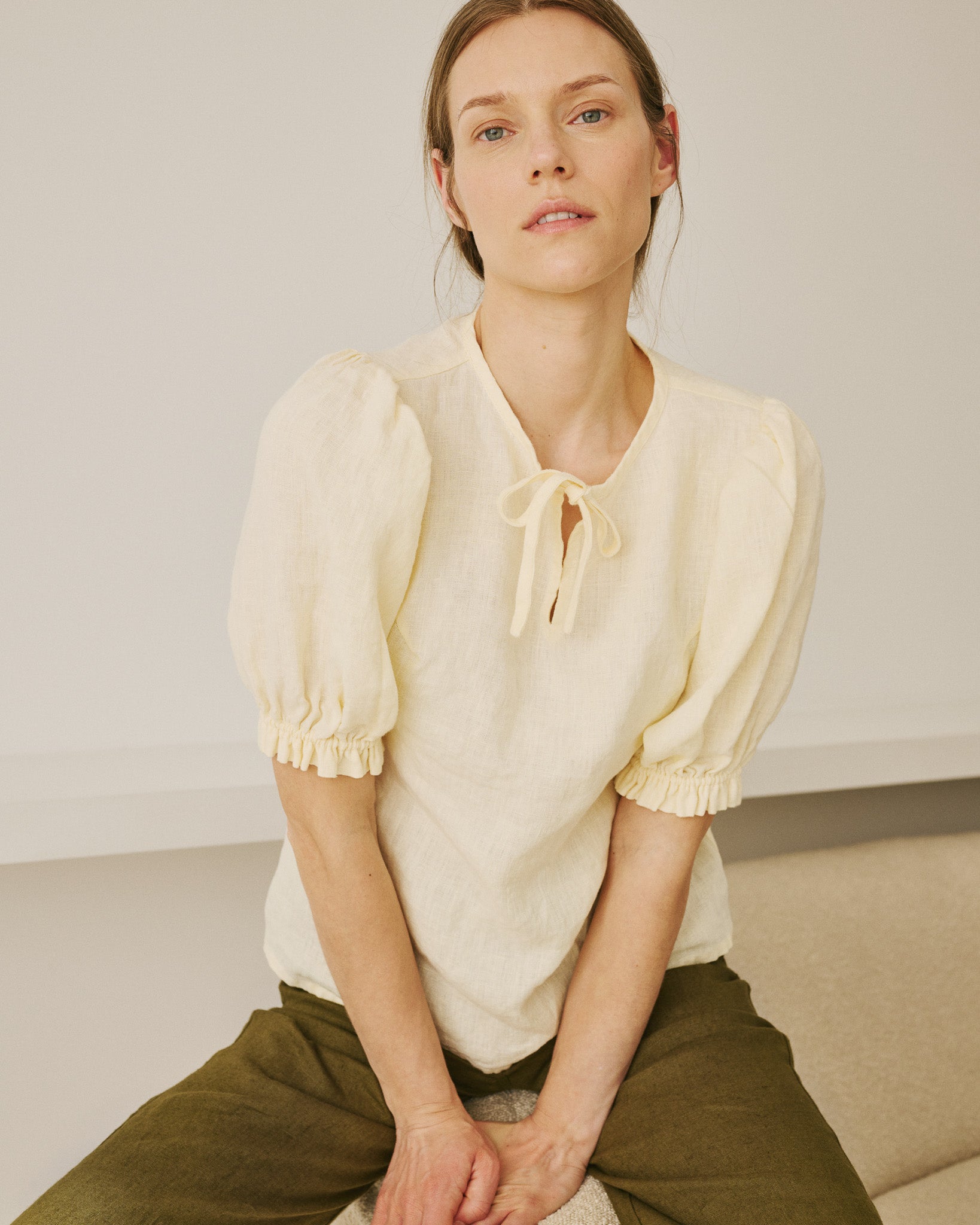 R: GUARDA puff sleeve linen top (Color: Light Butter; Size: S)