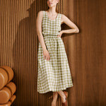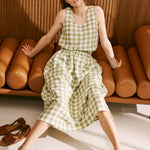 • The model is 5'8" tall (173 cm), size S, and wears a top in medium weight laurel gingham pattern.