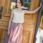 • Model is size S and wears Sion skirt in lime/white gingham, paired with Bay-2 top in cream.