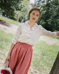 R: SION gathered linen skirt (Color: Raspberry Grid; Size: S/M)