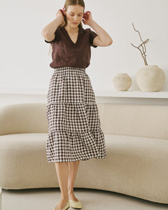 • Fits quite neatly across the shoulders. The straight cut of the top gives you some room around the waist and hips, great for tucking into a skirt and getting that “gently puffed” look.
