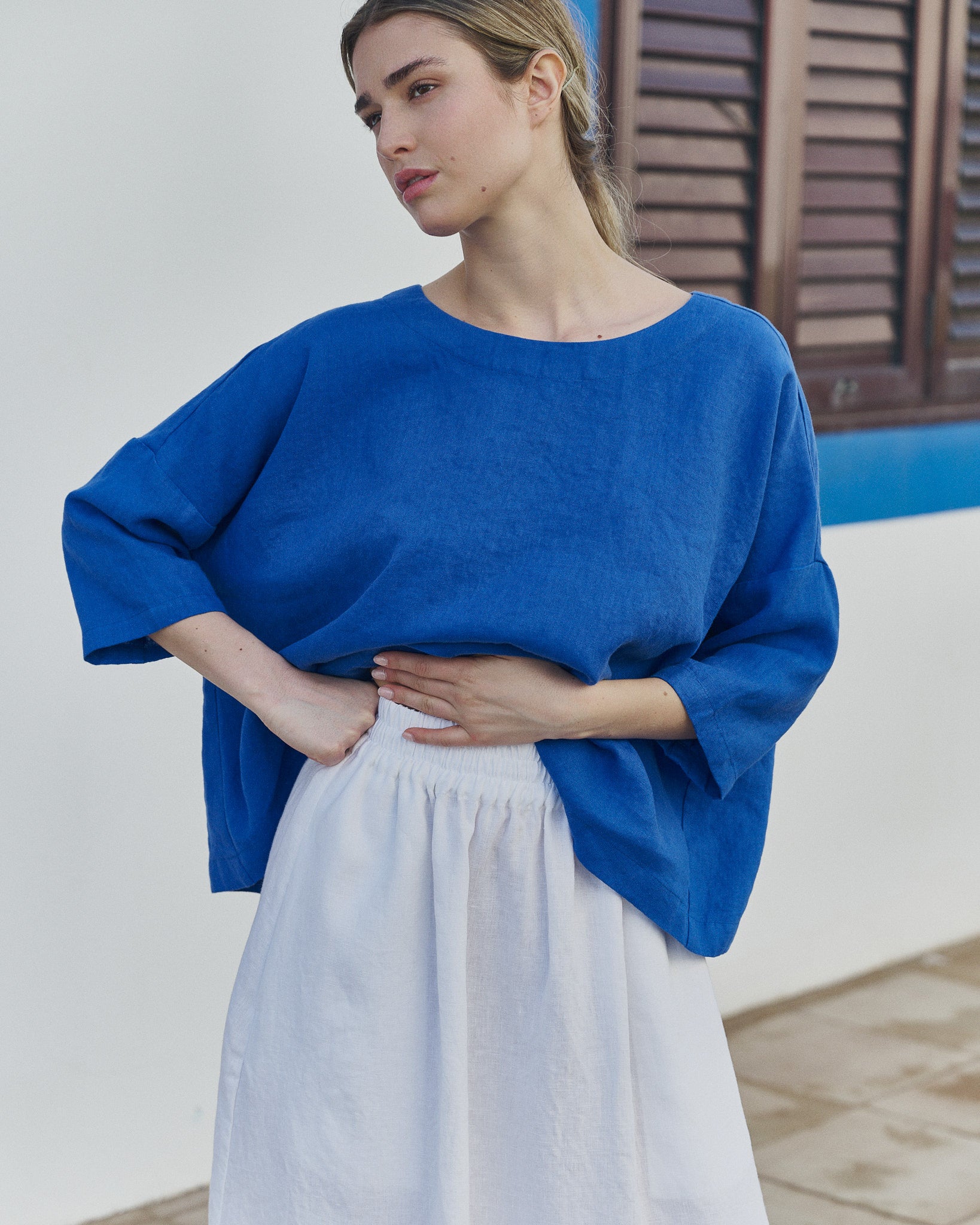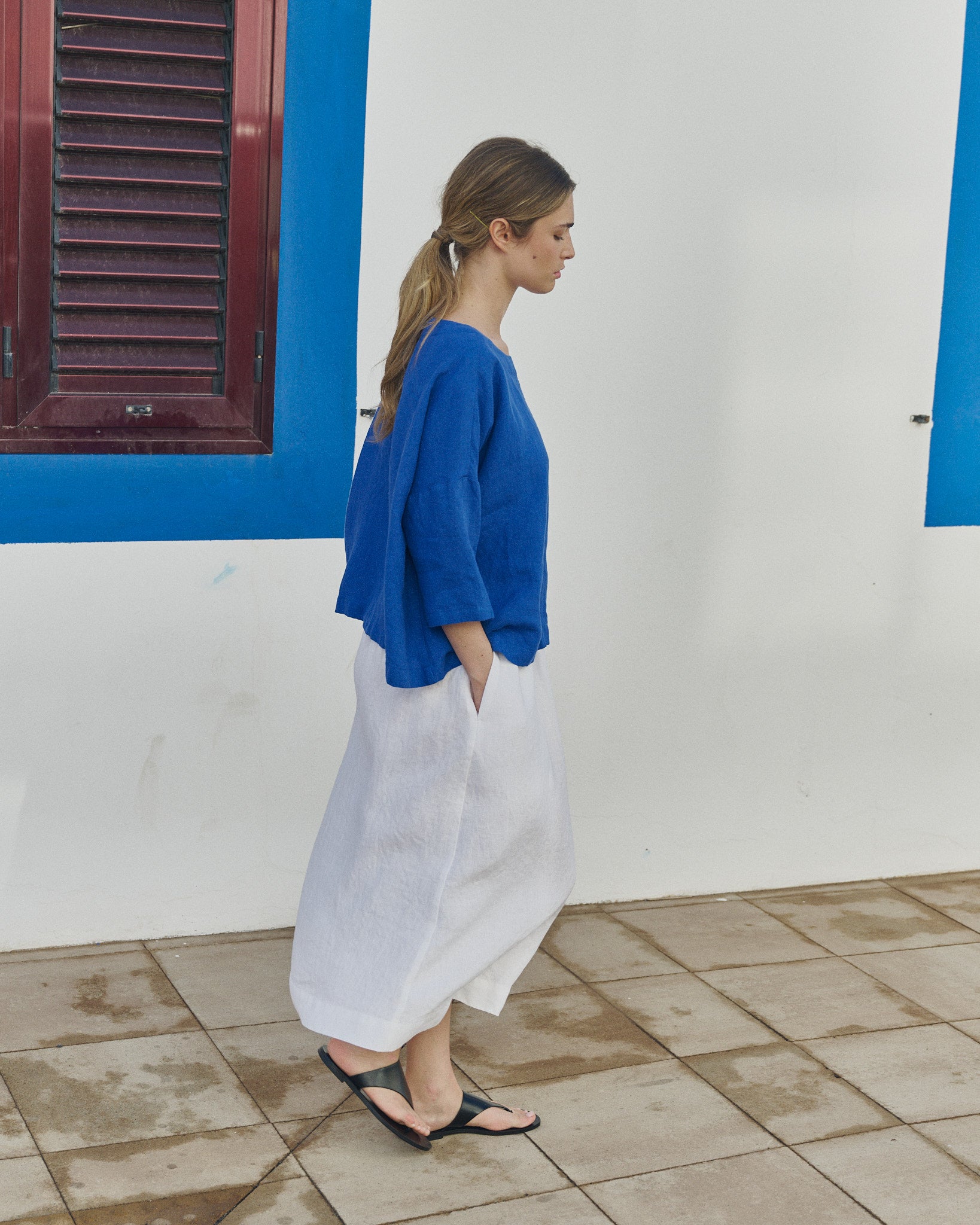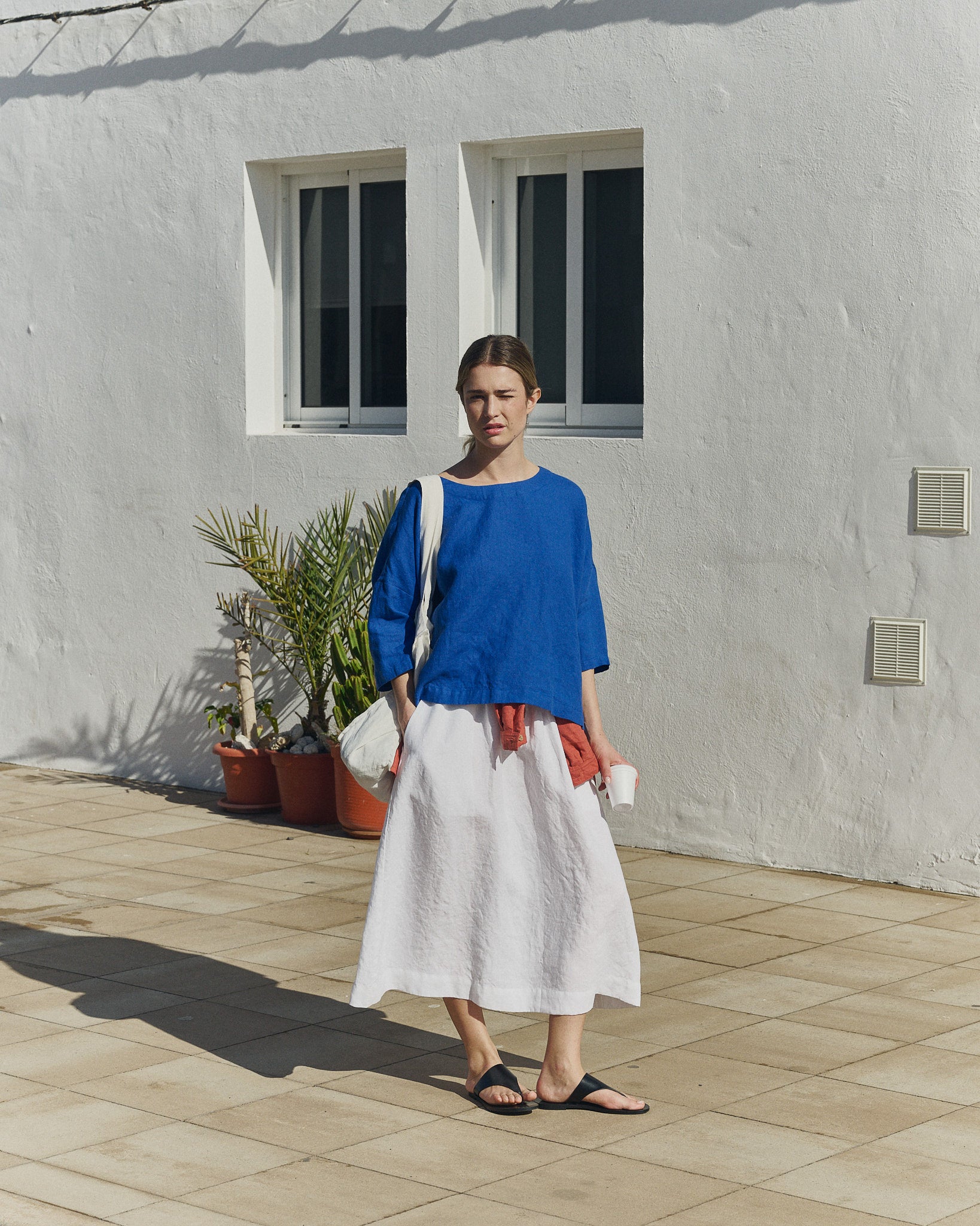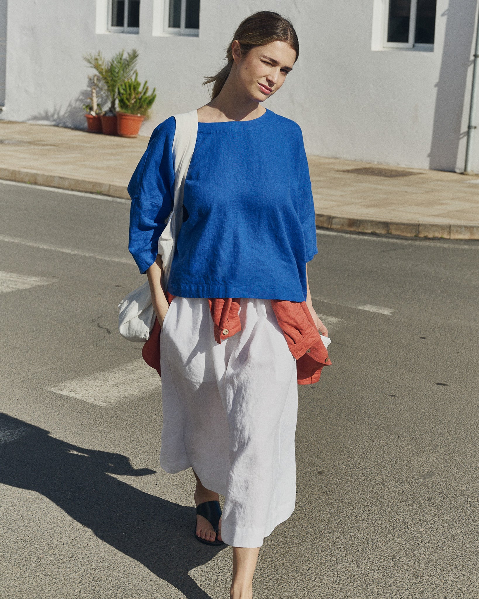 • Model wears size S/M in white, paired with the Old London top in cobalt blue.