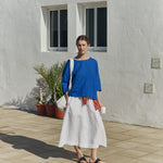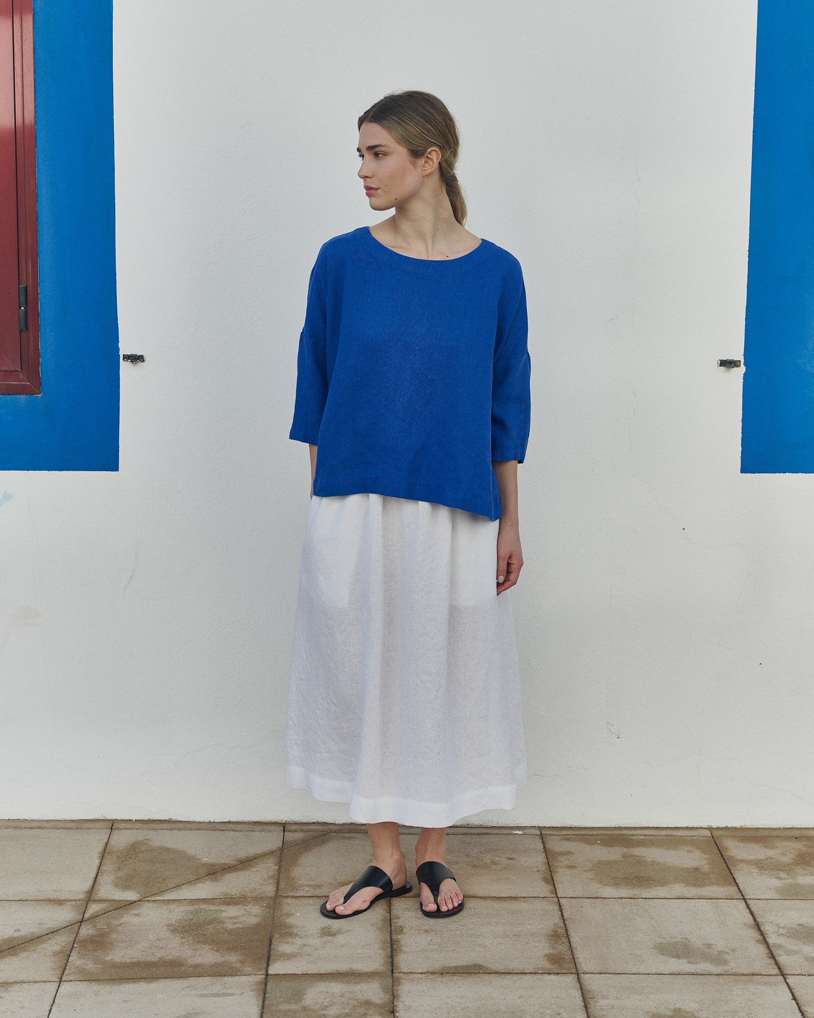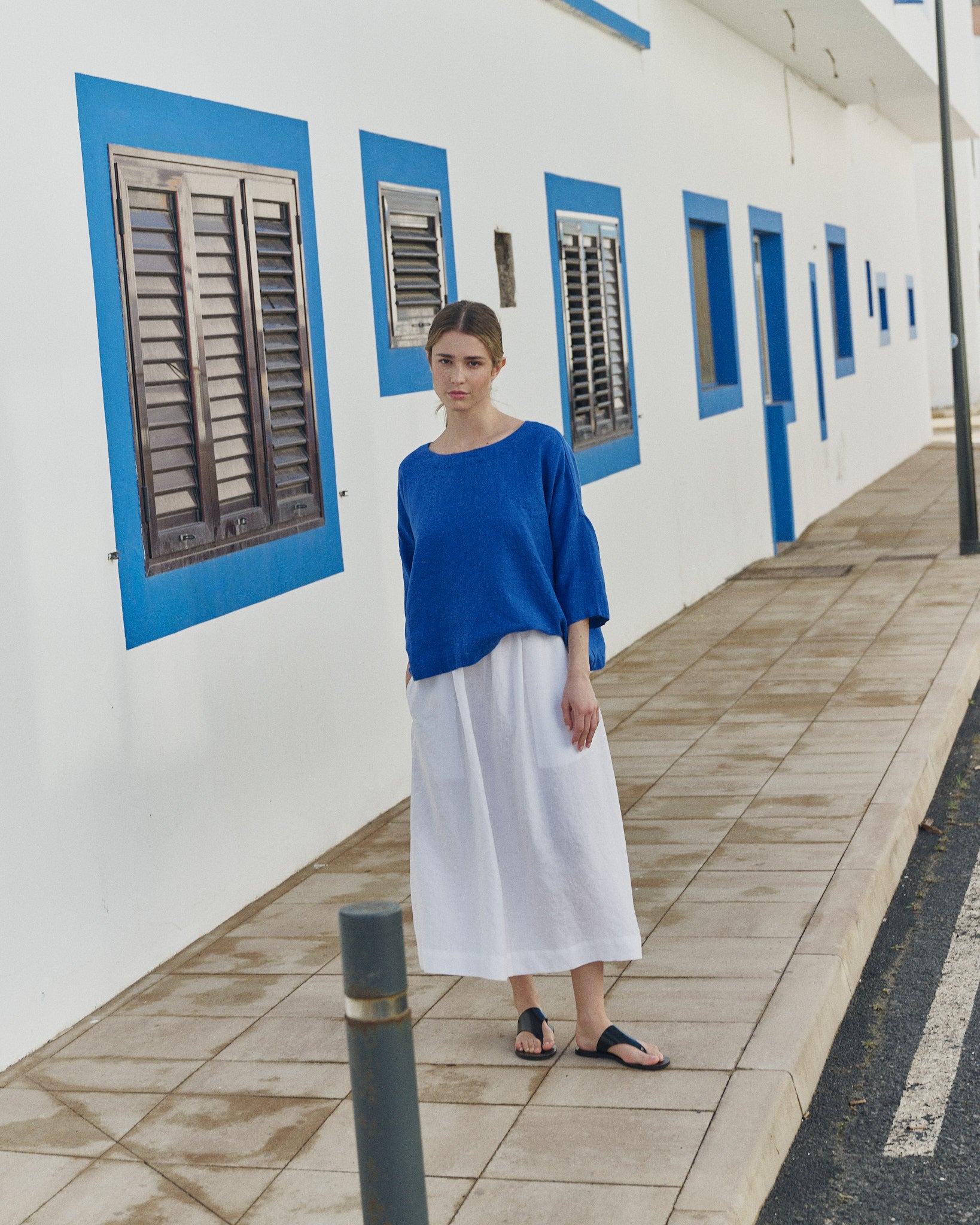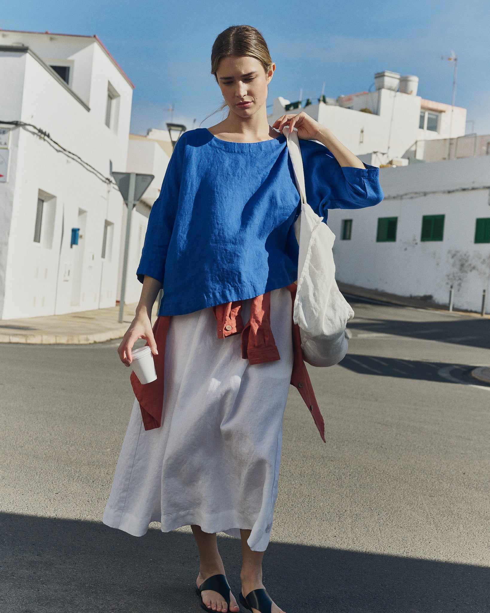 • Model wears size S/M in white, paired with the Old London top in cobalt blue.
