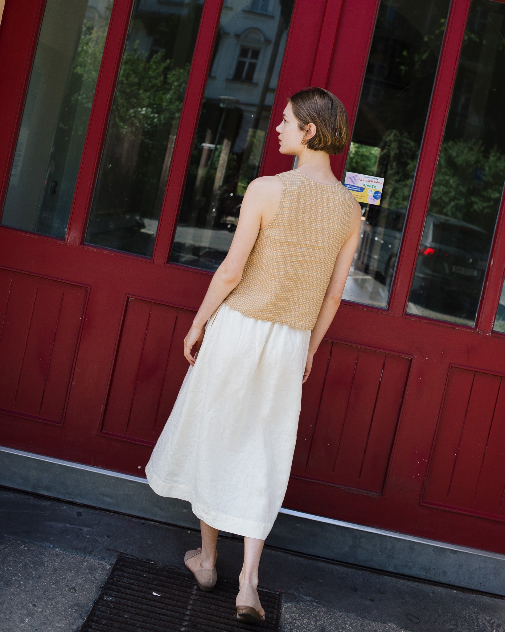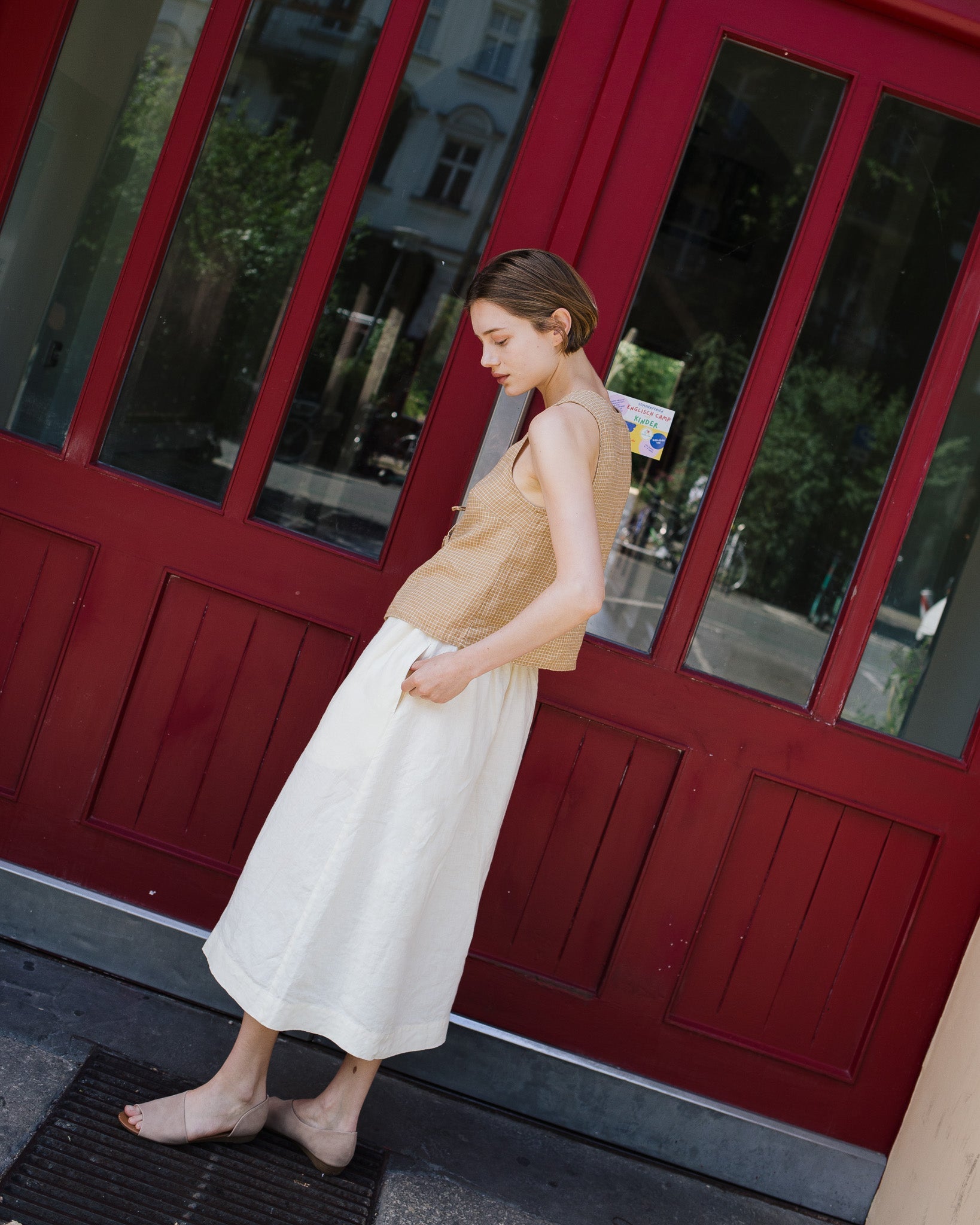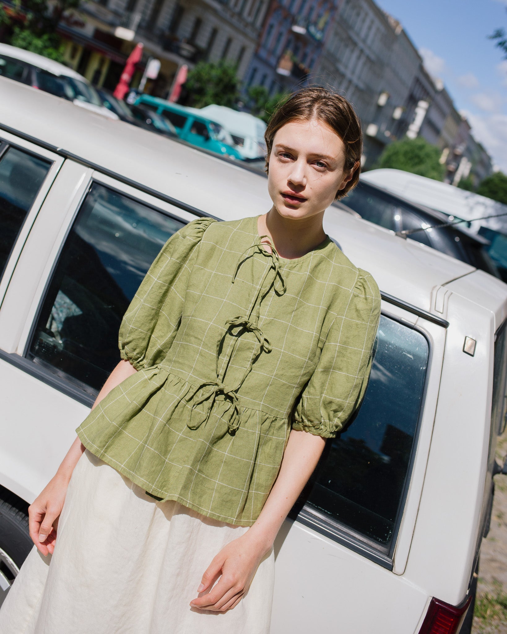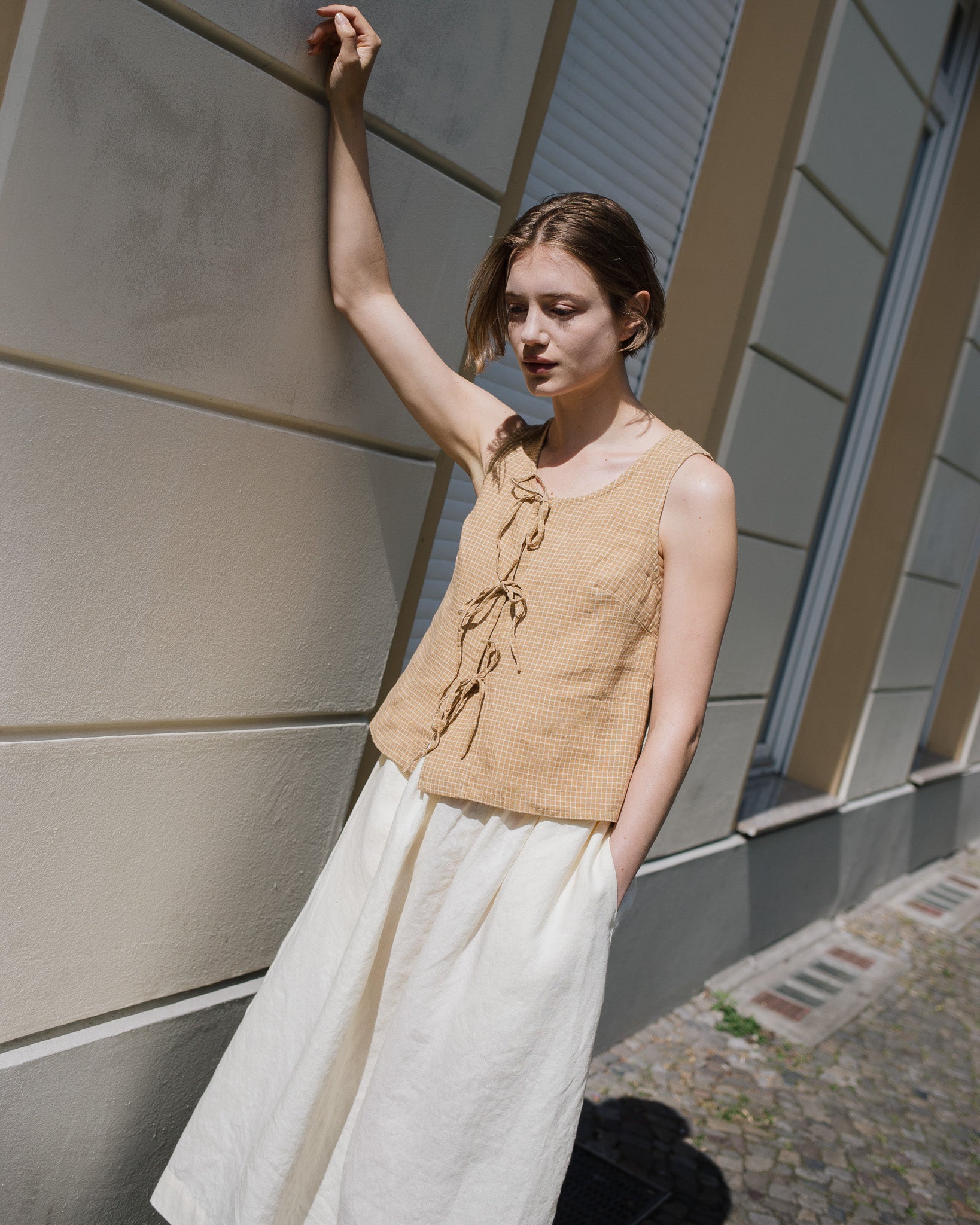 • Model wears size S in cream, paired with Mijas top in amber checks.
