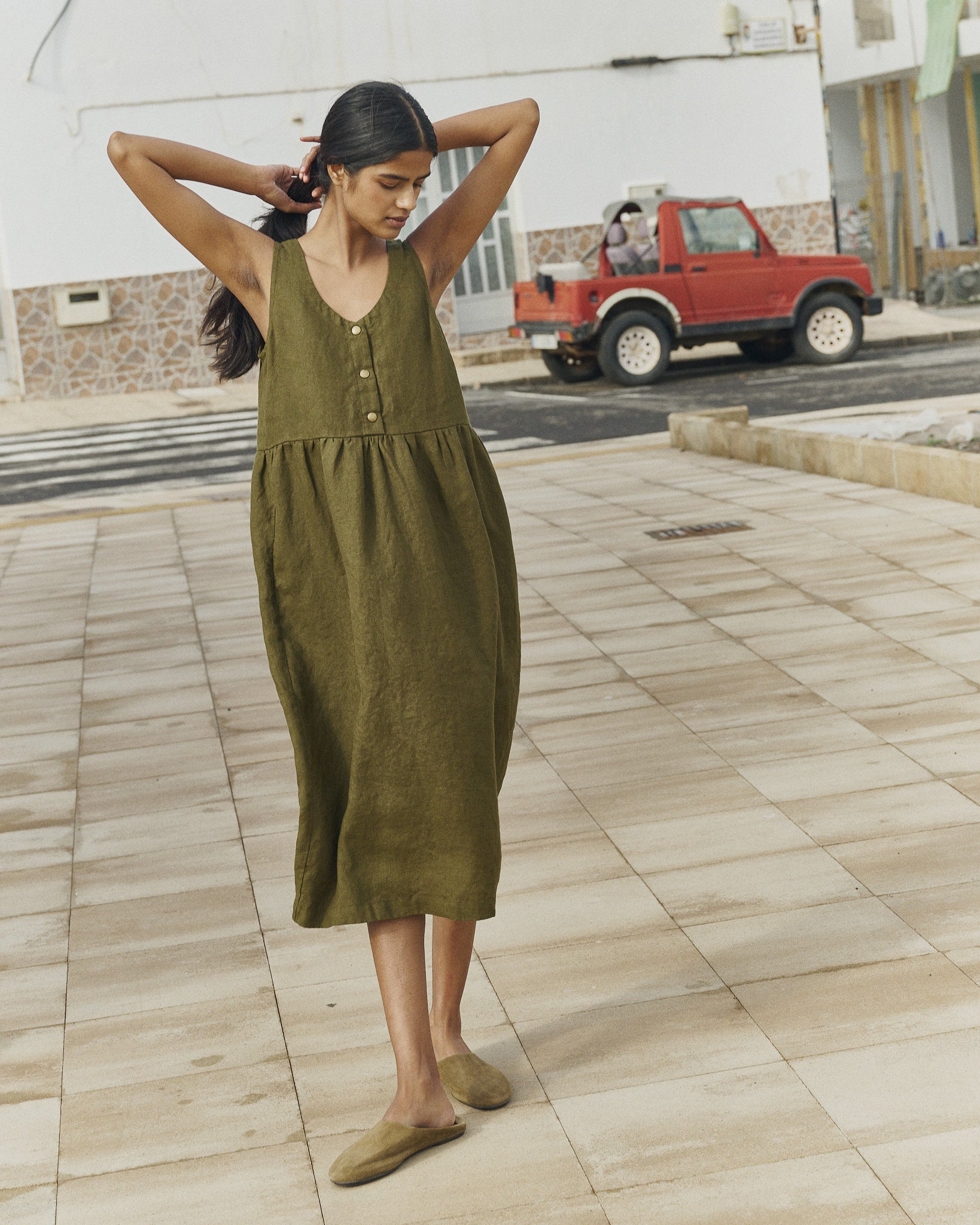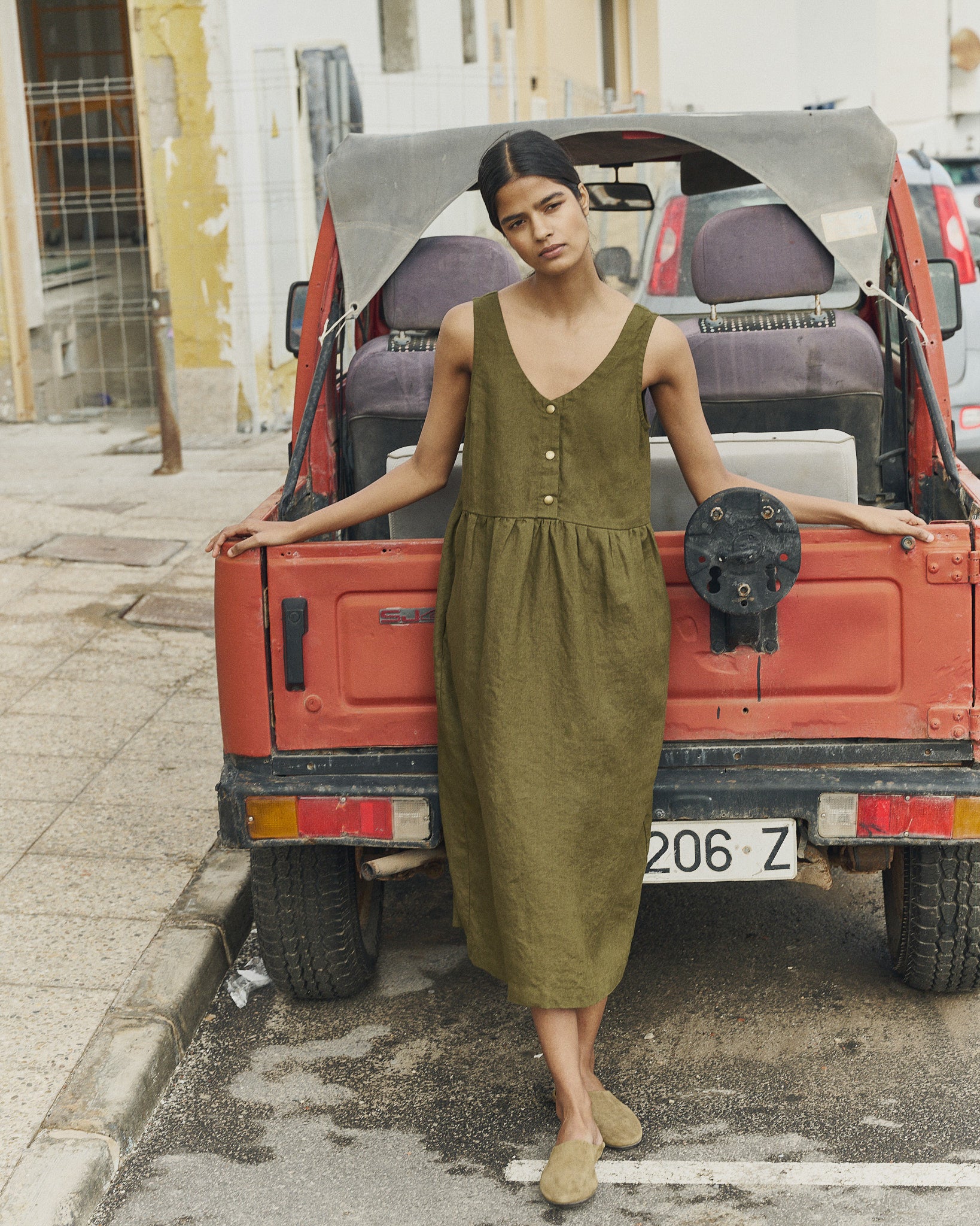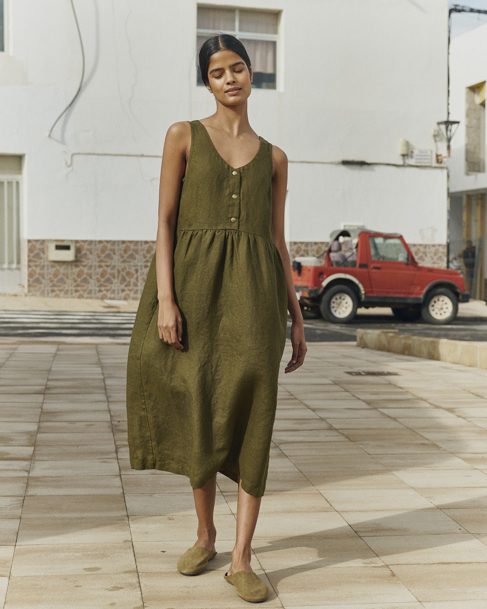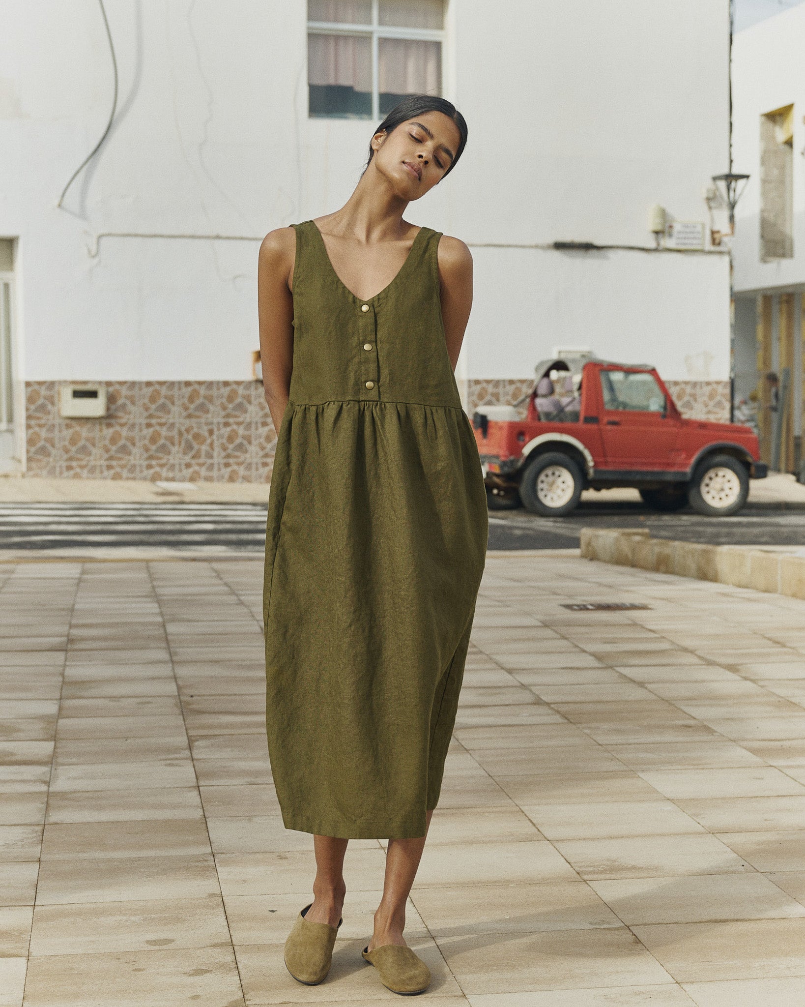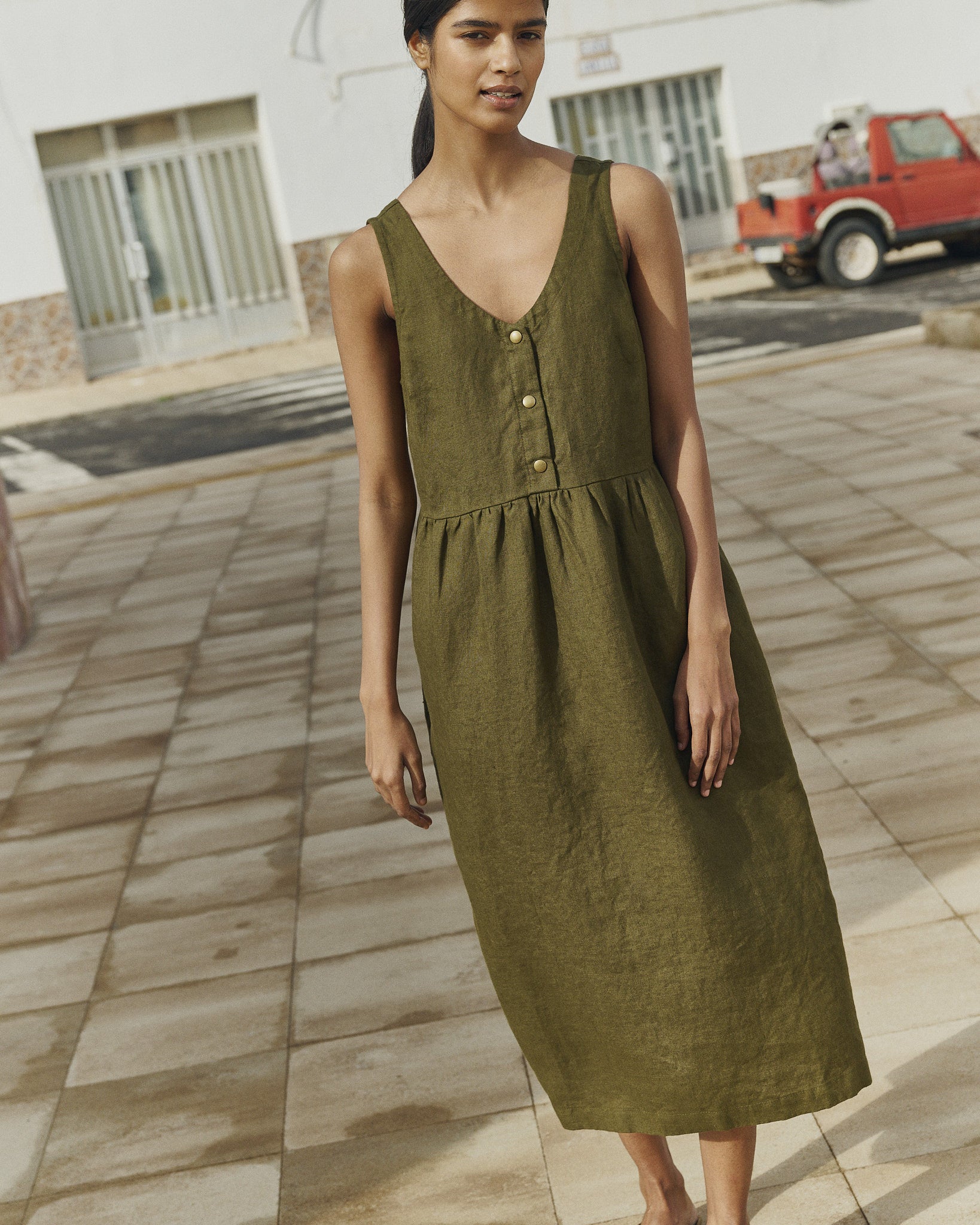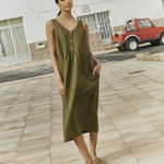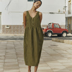 Product: VALLEY front brass snaps linen dress