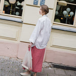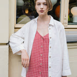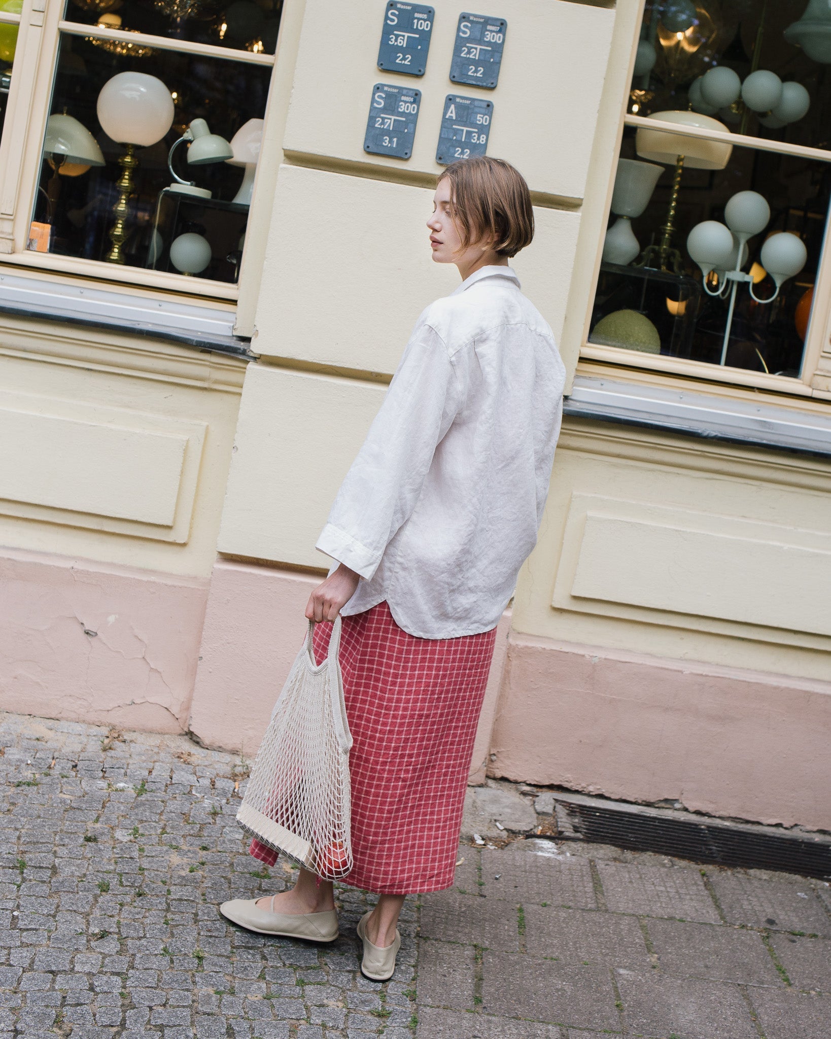 This linen garment is prewashed to minimize shrinkage. We recommend machine washing in lukewarm water (up to 40°C / 104°F) on a gentle cycle using a mild detergent.